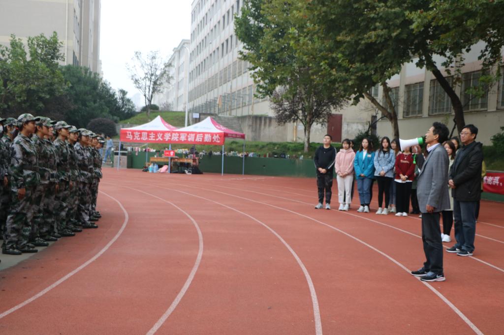 秋雨绵绵磨意志,军训场上展英姿。10月14日上午,pp电子官方网站院长杨云善,副院长程晋富,党委副书记徐永新、何晓坚在团委书记曹栋,团委老师陶青青、学生会主席团成员以及2020级班代的陪同下前往东操场,看望慰问正在军训的2020级新生。