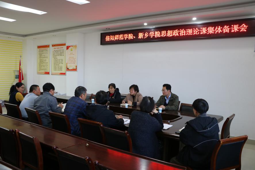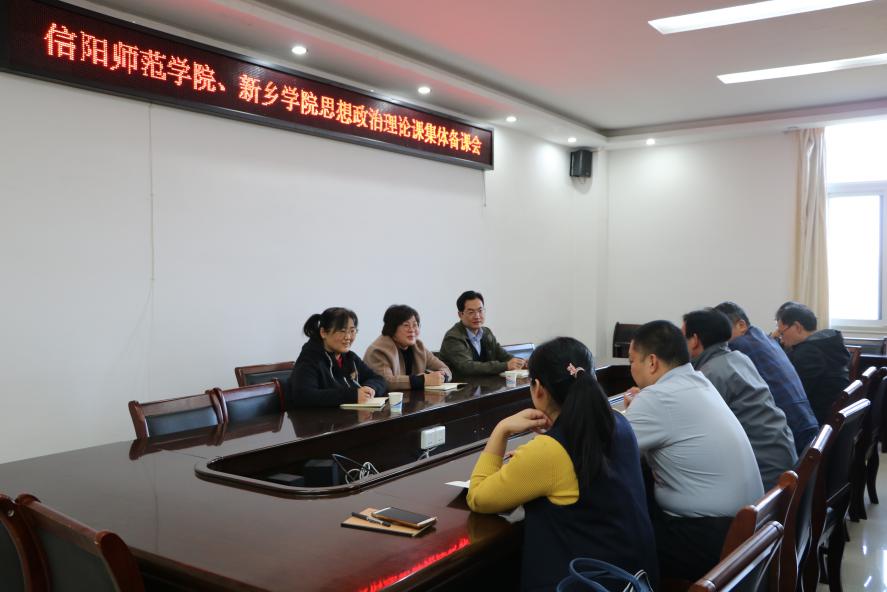 为进一步落实全省pp电子官方网站结对帮扶工作,11月10日下午,信阳师范学院和新乡学院《毛泽东思想和中国特色社会主义理论体系概论》《中国近现代史纲要》课程集体备课会在社科楼概论教研室召开。学院副院长周智、当代马克思主义研究所副所长徐永新、学院党委副书记何晓坚、“概论”教研室主任胡春湘,以及两校思想政治理论课教师代表刘新芬、周斌、孙金玲、陈杰、李桂红、王帆宇、曾帝参加备课会。