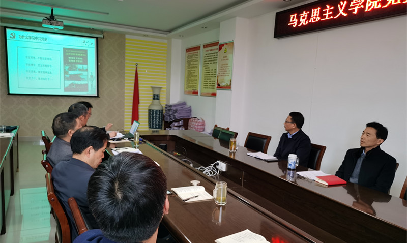 学院党委副书记徐永新传达了校党委书记王文鹏在校党史学习教育动员部署大会上的讲话,党委副书记何晓坚宣读了《pp电子官方网站2021年党史学习教育实施方案》。中国近现代史纲要教研室陈杰博士以“全面深入学习党史 汲取奋勇前进的智慧和力量”为题,从为什么学习中共党史、中共党史发展基本脉络、中共党史学习教育的历史特点和经验、当前党史学习教育的要求等四个方面,进行了系统阐释。