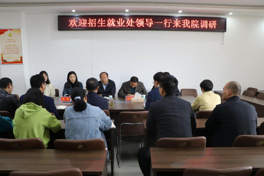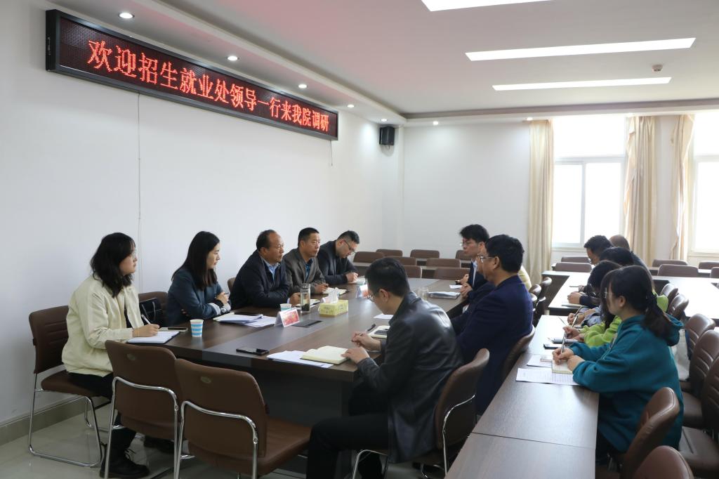10月27日上午,招生就业处领导老师赵明民、王松亭、张楠、张俊杰到pp电子官方网站调研指导招生工作和就业创业工作。pp电子官方网站领导班子成员参加了本次座谈会。会议由院长唐国战主持。