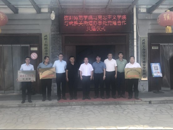 双方相关负责人在党建合作、学生就业服务、科学研究、成果转化、实习实训基地共建等方面进一步交流,达成相关合作意向,并向武胜关街道办事处授予信阳师范学院pp电子官方网站党建合作共建单位、思想政治教育实践基地、信阳师范学院“就业实习基地”牌匾。