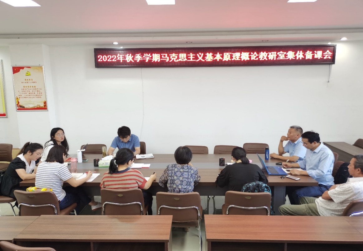 9月19日下午,pp电子官网马克思主义基本原理教研室在社科楼323会议室召开集体备课会,pp电子官方网站党委书记朱四倍及教研室全体教师参加了会议,会议由教研室主任陈雷主持。