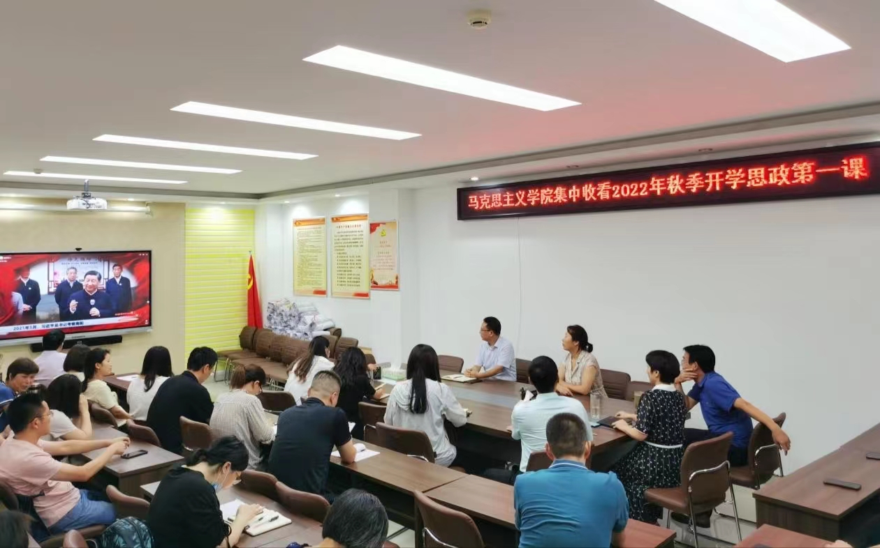 9月15日晚上,为深入贯彻习近平总书记关于“大思政课”建设的重要指示精神,由中共河南省宣传部、中共河南省委教育工委、河南省教育厅主办,河南农业大学和郑州大学承办的以“追寻足迹看我壮丽河山,牢记嘱托践行立德树人”为主题的2022年秋季开学思政第一课正式开讲。pp电子官方网站领导全体教师在社科楼323会议室进行了集中收看和学习研讨。