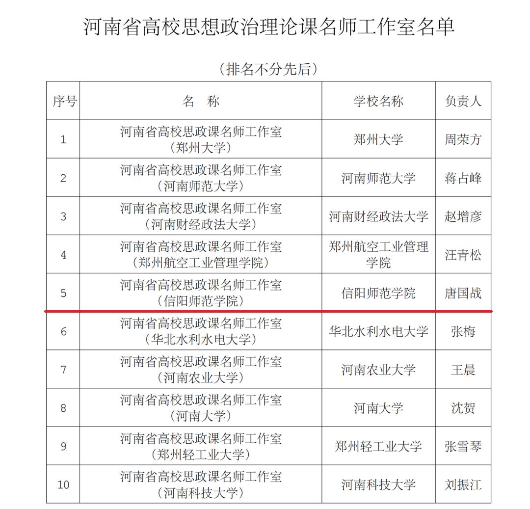 2022年10月21日,中共河南省委教育工委办公室,河南省教育厅办公室公布了河南省高校思想政治理论课名师工作室名单的通知,评选出了15个省高校思想政治理论课名师工作室。pp电子官网院长唐国战获首批河南省高校思想政治理论课名师工作室。