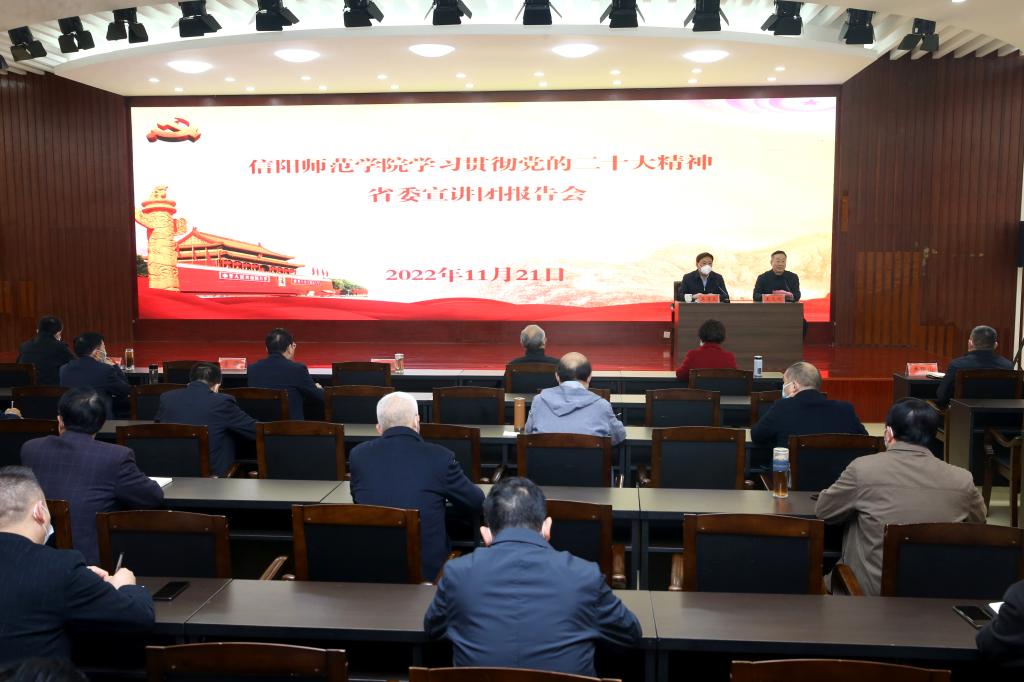 11月21日上午,根据省委统一部署,学习贯彻党的二十大精神省委宣讲团报告会在艺术楼报告厅举行。省委宣讲团成员、华北水利水电大学党委书记王清义教授围绕学习贯彻党的二十大精神作宣讲报告。校党委理论学习中心组成员、机关单位处级干部现场聆听报告。校党委书记王文鹏主持并讲话。pp电子官方网站在社科楼323会议室设分会场,集中收看学习贯彻党的二十大精神省委宣讲团王清义教授报告会。