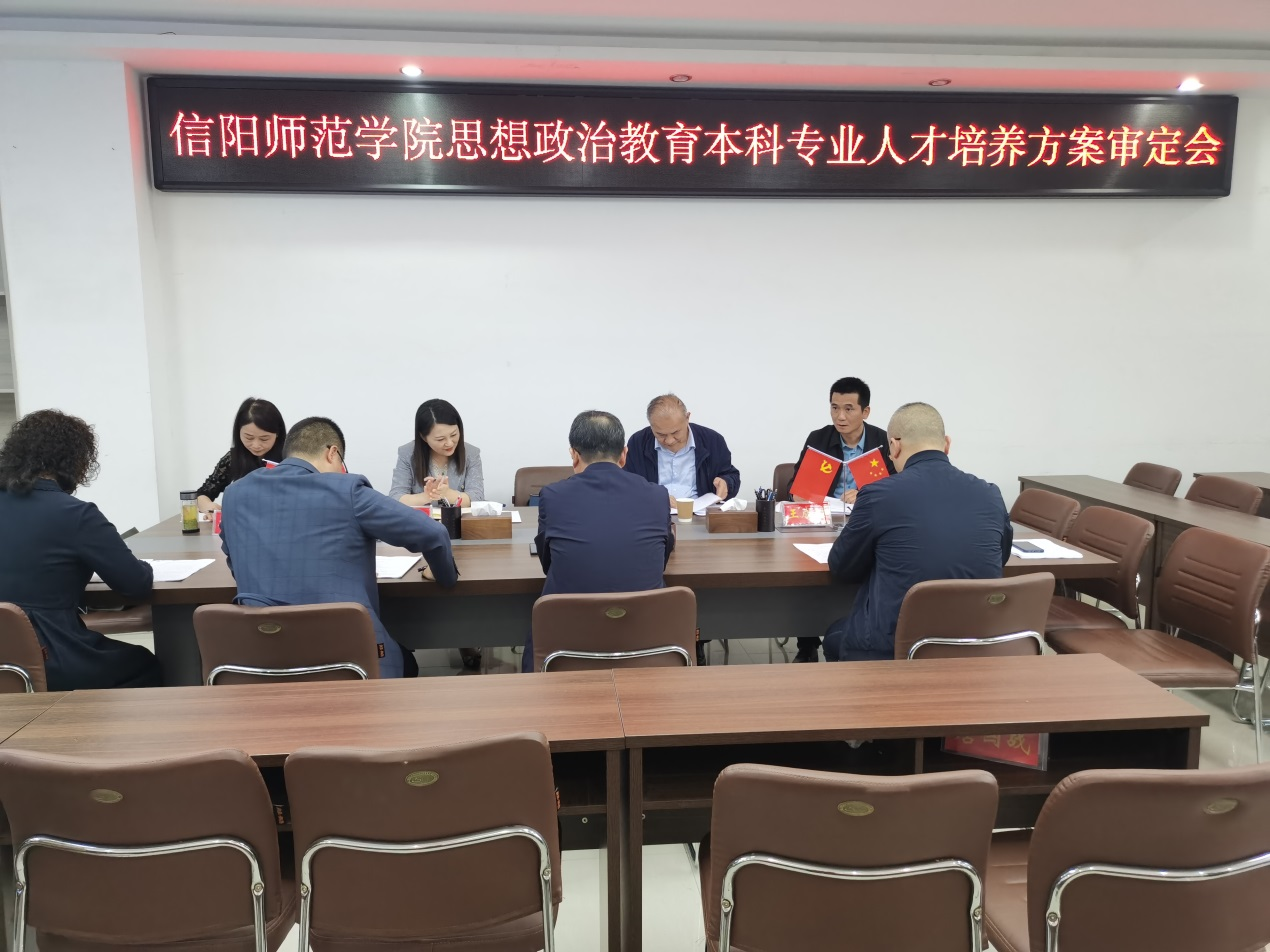 副院长訾其伦就思想政治教育本科专业人才培养方案的修订背景、修订情况和特色亮点做了简要汇报。审定专家依据《普通高等学校本科专业类教学质量国家标准》《普通高等学校本科专业目录和专业介绍(2012 年)》《关于深化本科教育教学改革全面提高人才培养质量的意见》《普通高等学校师范类专业认证实施办法(暂行)》以及学校《关于修订本科专业人才培养方案的指导意见(2023)》(信院字〔2022〕116 号)等文件精神,从培养目标、毕业要求、课程设置、课程体系对毕业要求支撑等方面进行了质询并提出了建设性的修改意见和建议。