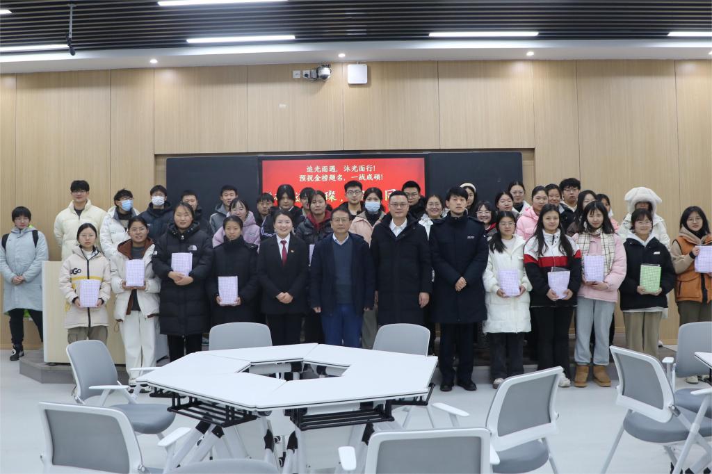 活动伊始,唐国战代表学院关切地询问了同学们的复习情况,并从统筹复习、劳逸结合、心态调整三个方面为同学们提供了宝贵的建议,鼓励同学们要合理规划时间和进度,保持平稳的心态,以咬定青山不放松的韧性、敢叫日月换新天的闯劲、宝剑锋从磨砺出的拼劲、不破楼兰终不还的冲劲去迎接最后的考验。接着,在场老师共同为考研学子送上祝福,希望他们在最后时刻坚持到底,用最好的状态迎接考试。pp电子官网还为考研学子准备了不一样的“加油包”:“一战成硕”的卡片、心想事“橙”的橙子、“苹”安上岸的苹果和“一旺到底”的旺仔牛奶等,带有美好祝福的礼物让备战考研的同学们倍感贴心和温暖,饱含了学院老师们对学子们浓浓的关爱和殷切的期盼,以及希望考研学子“一战成硕”美好期许。