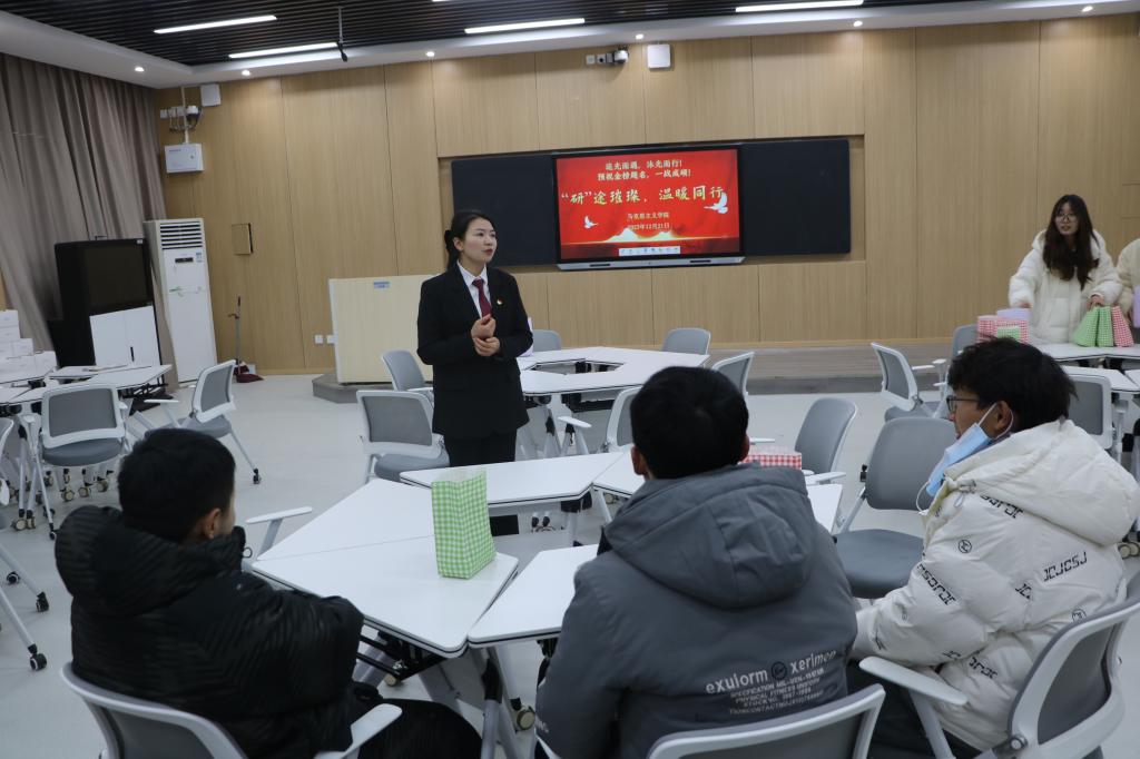 情系考研生,冬日送祝福。12月21日上午,pp电子官方网站在社科楼516教室举办“‘研’途璀璨,温暖同行”主题活动。pp电子官网院长唐国战,党委副书记黄煌,团委书记陶青青,团委老师沈海蓄以及2020级考研学子共同参加本次活动。活动由陶青青主持。