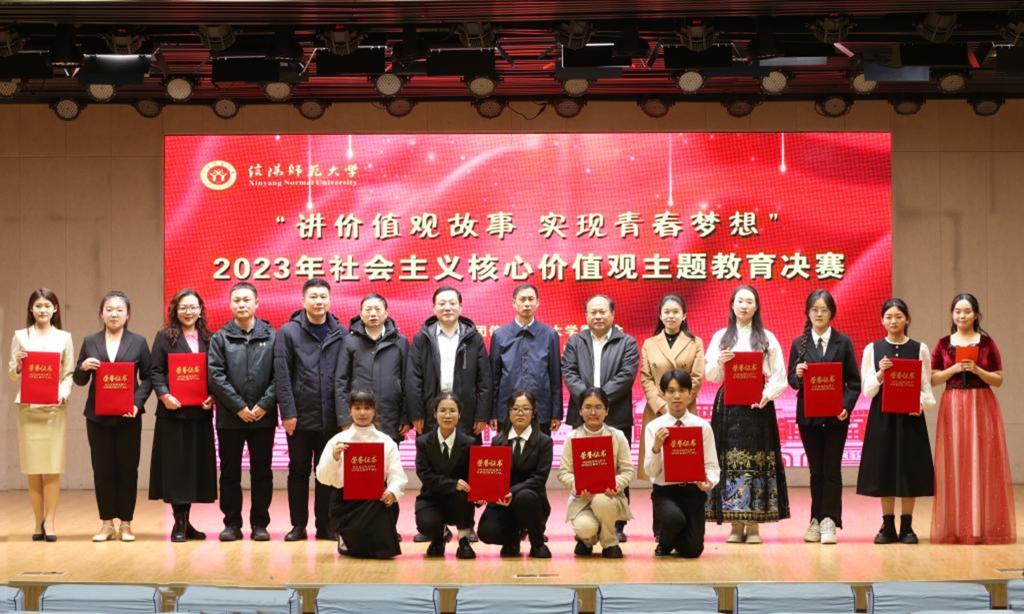 12月30日,信阳师范大学社会主义核心价值观主题教育决赛在理科楼报告厅举行,pp电子官方网站参赛选手崔航宁、李雯娜荣获二等奖。