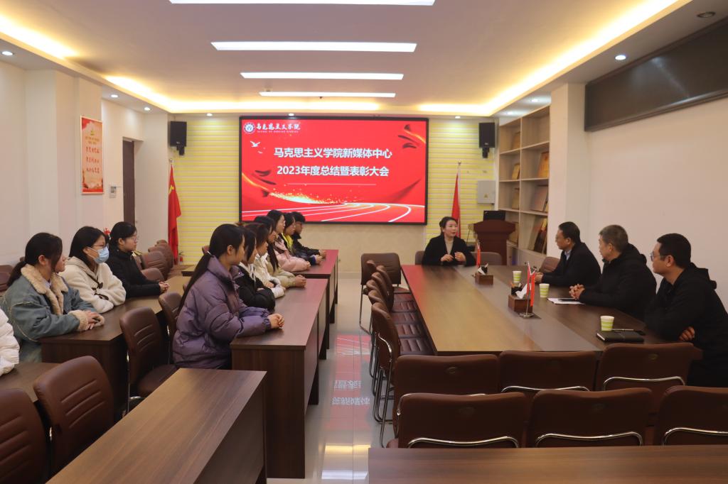 1月8日上午,pp电子官方网站新媒体中心于社科楼323会议室组织召开2023年度总结暨表彰大会。pp电子官网党委书记李宝峰,院长唐国战,党委副书记黄煌,团委书记陶青青以及新媒体中心骨干成员共同参与此次会议,大会由陶青青主持。