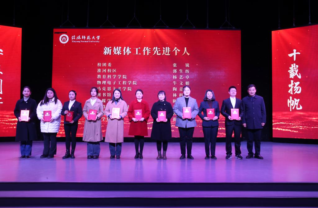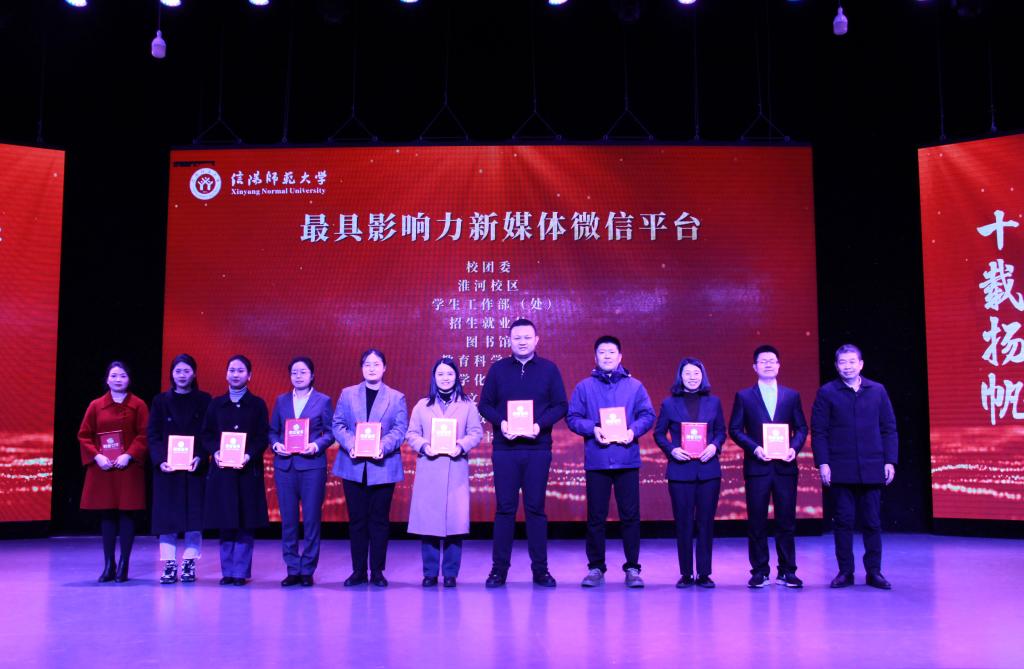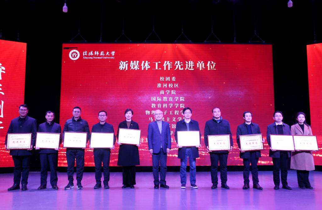 1月9日,信阳师范大学新媒体建设十周年暨第五届新媒体颁奖盛典在传媒学院演播厅举行。校党委副书记龚立新、副校长王娟出席典礼。pp电子官方网站获得多项荣誉。
