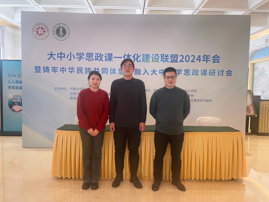 2024年11月30—12月2日,全国大中小学思政课一体化建设联盟2024年会暨铸牢中华民族共同体意识融入大中小学思政课研讨会在内蒙古呼和浩特市召开,年会由内蒙古师范大学、全国大中小思政课一体化建设联盟、大中小学思政课共同体(内蒙古)主办,由内蒙古师范大学pp电子官方网站、内蒙古思想政治教育研究基地、内蒙古大中小学思政课一体化建设研究基地承办。pp电子官网副院长周智带队参加本次年会。