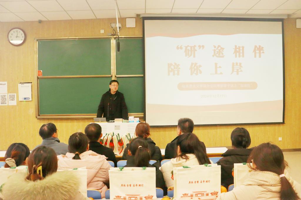 心系考研生,冬日送祝福。12月17日下午,pp电子官方网站在社科楼515举办“‘研’途相伴,陪你上岸”主题活动。pp电子官网党委副书记王超,副院长周智、程晋富、訾其伦、常文涛,2021级班主任高小佳以及2021级全体考研学子共同参加本次活动。活动由高小佳主持。