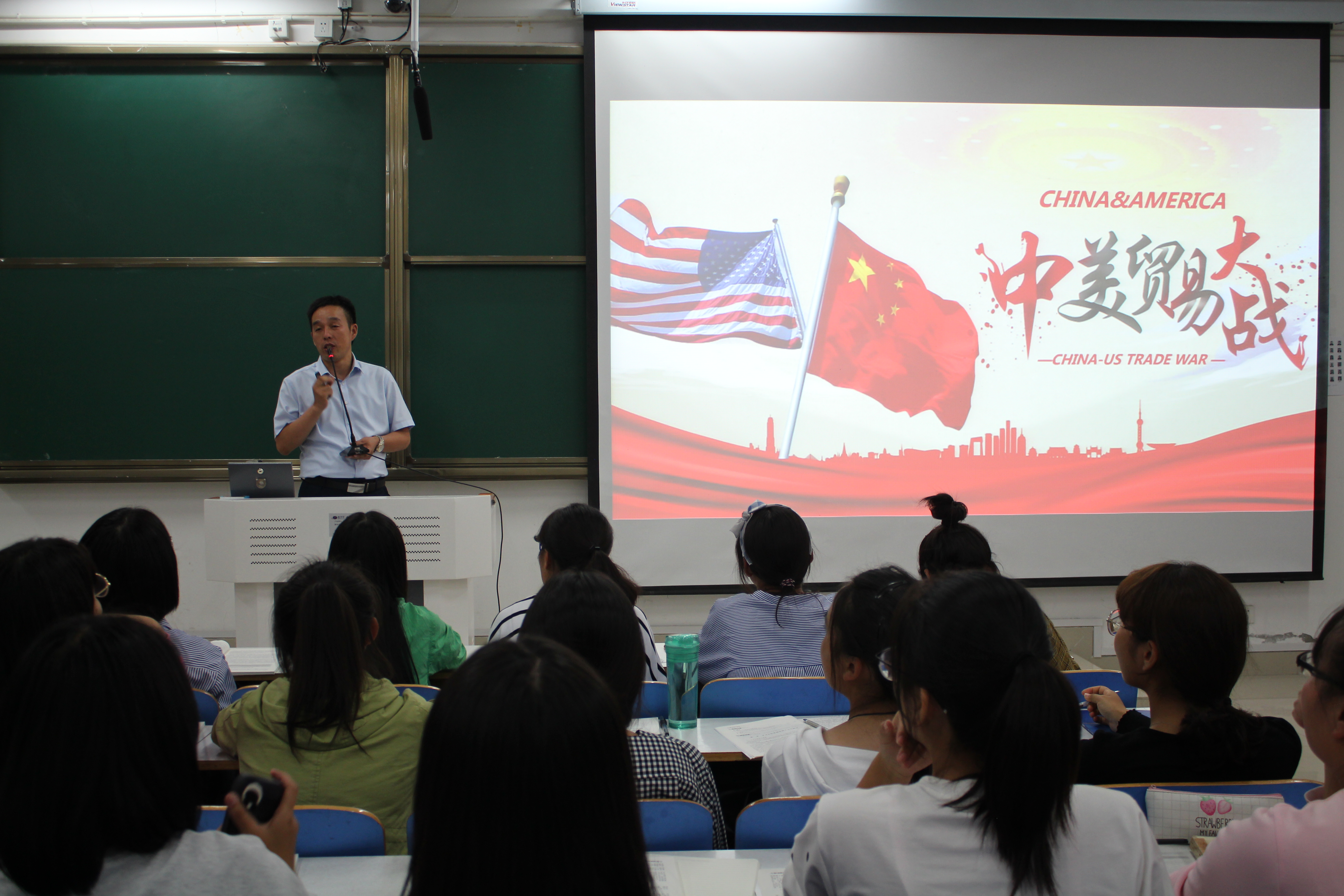为贯彻落实教社科〔2018〕1号文件,帮助pp电子官网学子正确认识新时代国内外形势,深刻领会党的十八大以来党和国家事业取得的历史性成就、发生的历史性变革、面临的历史性机遇和挑战,9月28日、9月29日晚,pp电子官网王帆宇副教授在社科楼514、516教室为pp电子官网全体学生讲授了题为“中美贸易大战”的形势与政策课。