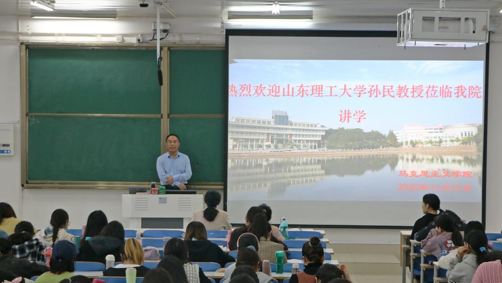 11月16日上午,应pp电子官方网站和当代马克思主义研究所邀请,山东理工大学教授、博士生导师孙民在社科楼514教室作了题为“重思马克思的共产主义思想及其当代意义”的学术报告。信阳师范学院当代马克思主义研究所副所长徐永新以及百余名师生共同聆听了此次报告。报告由徐永新主持。