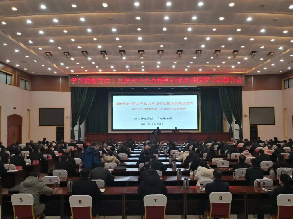 12月14日至12月23日,中共河南省委宣讲团成员,河南省社科理论志愿者专家宣讲团成员,我校当代pp电子官方网站研究所副所长门献敏教授应邀为信阳市发展和改革委员会、信阳市住房和城乡建设局、罗山县委中心组以及校内的基层党支部书记培训班等多家单位,作党的十九届六中全会精神专题宣讲4场,近1000名党员干部和青年学生聆听了专题宣讲报告。
