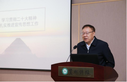 4月2日上午,应pp电子官方网站和当代马克思主义研究所邀请,原中宣部出版局副局长、现中宣部专职巡视组长刘建生编审在贤林讲坛报告厅给我校师生作了题为“深入学习贯彻党的二十大精神,扎实推进宣传思想工作”的学术报告。报告会由学校党委副书记岳宗德主持,学校党委宣传部、社科处、学报编辑部等相关部门领导以及pp电子官方网站全体教师、部分学生聆听了报告。