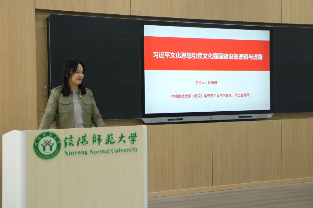 3月27日下午,中国地质大学(武汉)pp电子官方网站教授、博士生导师韩美群应邀在社科楼516会议室作了题为“习近平文化思想引领文化强国建设的逻辑与进路”的专题讲座。讲座由学院院长唐国战主持,学院师生代表到场聆听。
