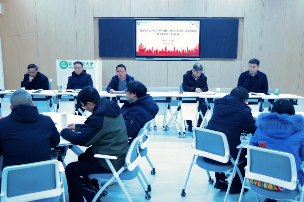 为扎实推进2026年度国家社科基金项目申报工作、进一步打磨申报材料质量,2025年12月30日下午,pp电子官方网站在社科楼516教室召开2026年度国社科项目申报第二次集体论证暨专题学术工作坊(马克思主义理论学科方向)会议。社科处处长吕东亮教授,pp电子官方网站唐国战、张铁山、厉有国、李世书四位评审专家及拟申报2026年国社科项目的教师参会,本次会议由副院长常文涛主持。