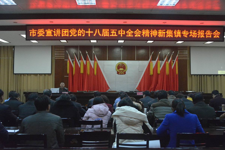 门献敏教授以“奋力夺取全面建成小康社会决胜阶段的伟大胜利”为题目,从全面建成小康社会决胜阶段的形势、“十三五”时期经济社会发展的指导思想、目标要求和基本理念、“十三五”时期经济社会发展的各项任务和重大举措以及深入学习贯彻五中全会精神,推动信阳在“四个河南建设”进程中更加出彩等四个方面进行了深刻系统地解读。此次宣讲活动在新县两乡镇上下引起了热烈反响,与会干部、群众认为该宣讲报告把顶层设计与基层实践、中央政策与群众关切紧密结合起来,论述透彻、内容翔实、重点突出,既有理论高度,又有实践深度,生动而深刻。大家纷纷表示,一定要以此次宣讲为契机,自觉把思想和行动统一到学习贯彻落实五中全会精神的安排部署上来,与时俱进、奋发有为,精心谋划“十三五”发展蓝图,统筹做好当前工作,奋力完成全年目标任务,确保“十二五”圆满收官、实现“十三五”良好开局。(宣传部 李东晓供稿)