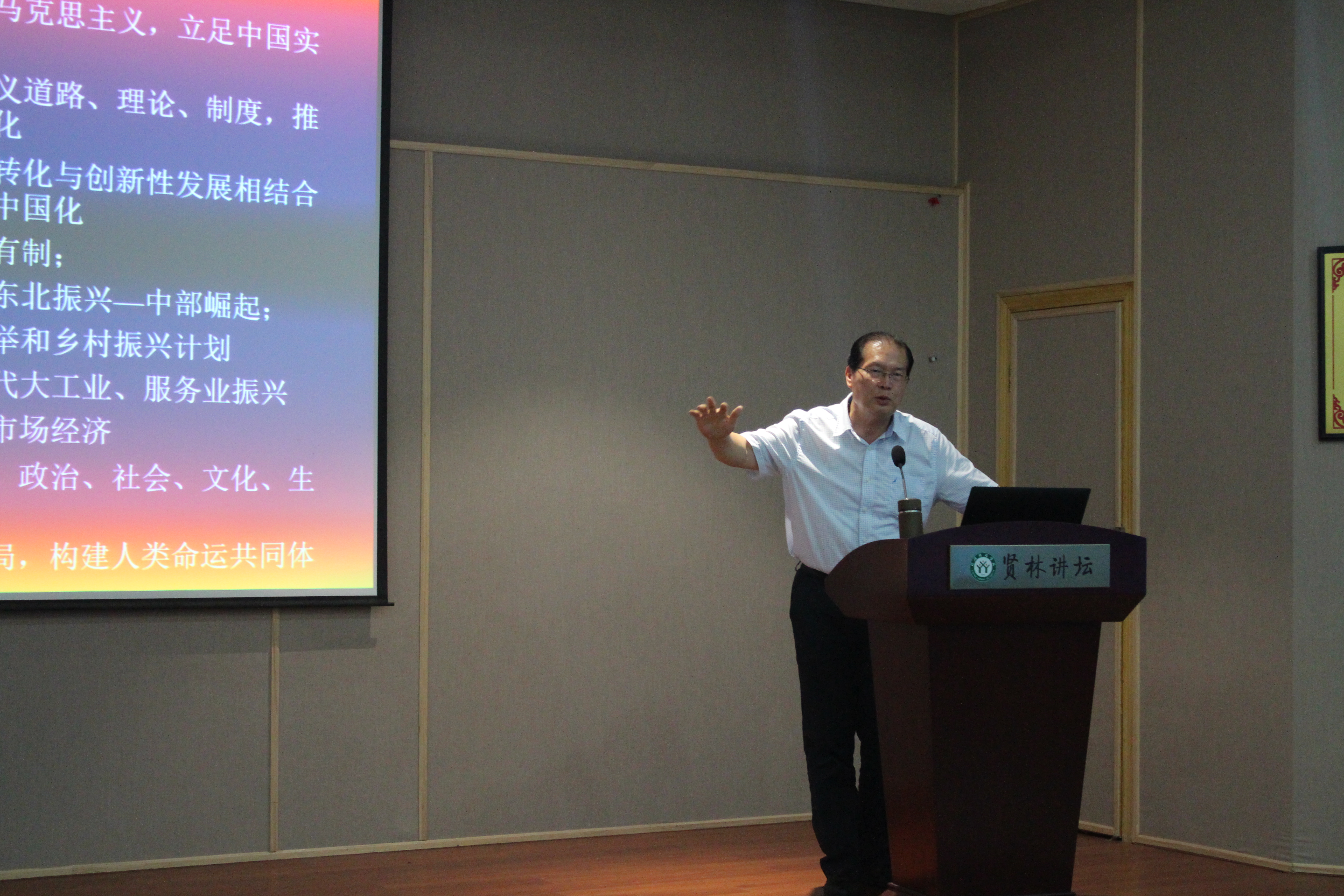 6月25日下午,应pp电子官方网站与当代马克思主义研究所邀请,华中科技大学博士生导师欧阳康教授莅临贤林讲坛,为pp电子官网学子作了题为“改革开放四十年的反思与前瞻”的学术报告。信阳师范学院副校长齐城、pp电子官方网站党委书记唐国战、当代马克思主义研究所副所长门献敏及pp电子官网百余名师生共同聆听了报告。报告会由齐城主持。