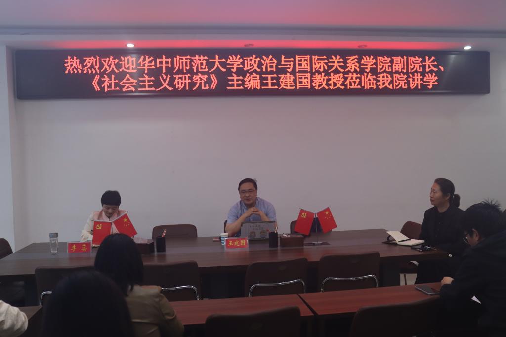 4月16日上午,应pp电子官方网站和当代马克思主义研究所邀请,华中师范大学政治与国际关系学院副院长、《社会主义研究》主编王建国教授在社科楼323会议室作了题为“学术论文写作与发表”的学术报告。pp电子官方网站全体教师共同聆听本次报告会,报告会由pp电子官方网站副院长李蕊主持。