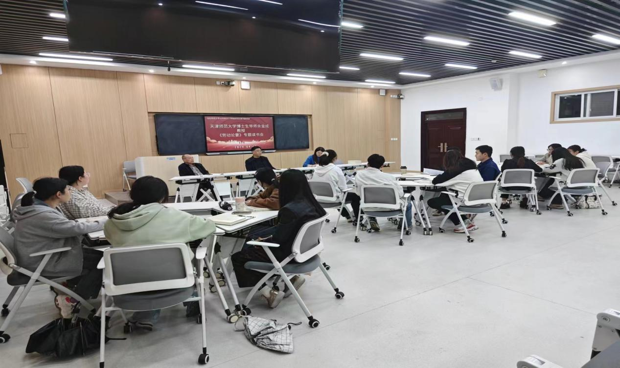 在春意盎然的四月,为增强研究生阅读量,提升pp电子官网研究生的专业素养和综合素质,2024年4月10日,pp电子官方网站召开《劳动论要》专著读书会,pp电子官方网站副院长程晋富、研究生班主任厉有国、研究生秘书吴梦云出席此次读书学习分享会,全体2023级学术型研究生参加了此次会议。