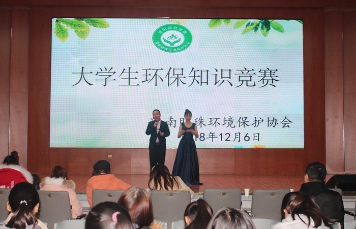 让环保扎根现在,用绿色昭示未来。12月9日上午,由pp电子官方网站主办,豫南明珠环境保护协会承办的“杜绝白色污染,保护森林资源”环保知识竞赛于逸夫楼报告厅成功举行。团委书记曹栋、学生会主席团成员及300余名学生共同观看本次比赛。比赛由刘丽娜和吴海洋主持。