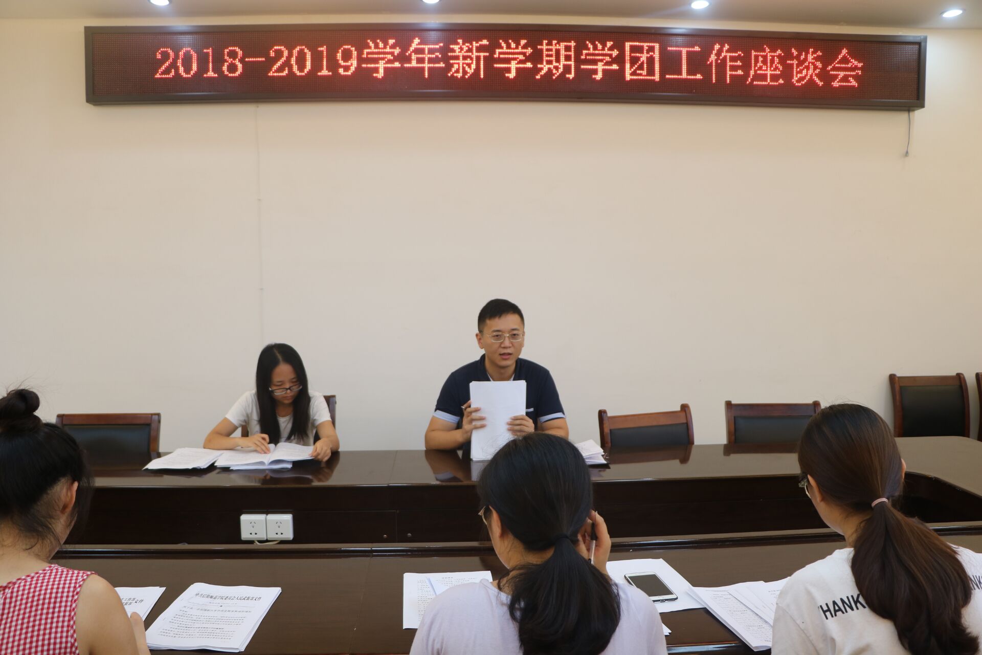 为对新学期学团工作进行全面部署,9月4日下午,pp电子官网在社科楼323会议室召开新学期学团工作座谈会,对新学期学生会常规性工作的顺利开展作出要求。pp电子官网团委书记曹栋、团委老师曹菁菁以及学生会主席团部分成员共同参加此次会议。