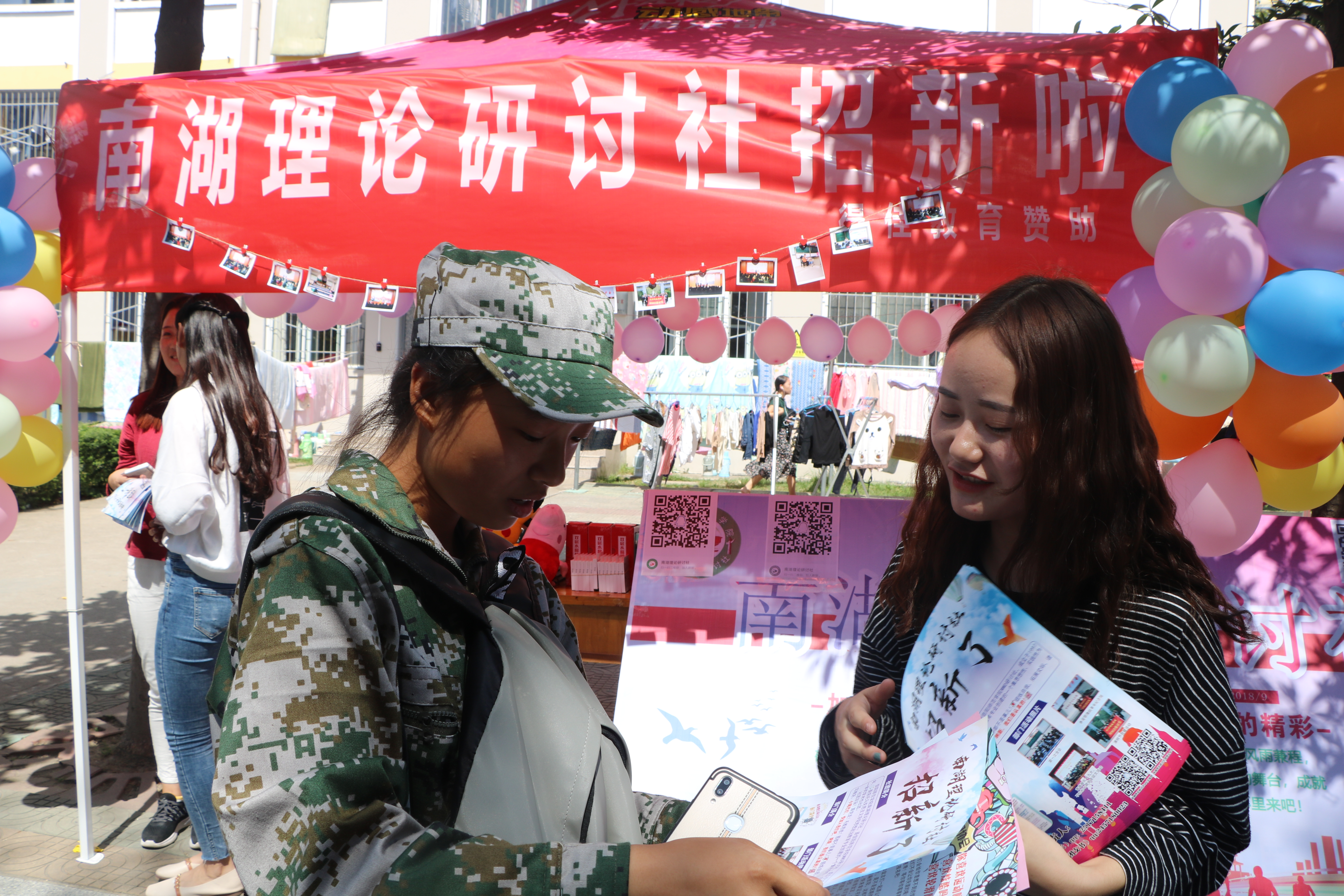 演绎社团魅力,谱写青春梦想。9月23日至9月25日,信阳师范学院2018-2019学年“百团大战”活动在学校思齐路拉开帷幕。pp电子官网考研服务社、豫南明珠环境保护协会和南湖理论研讨社积极参与此次社团纳新宣传活动。