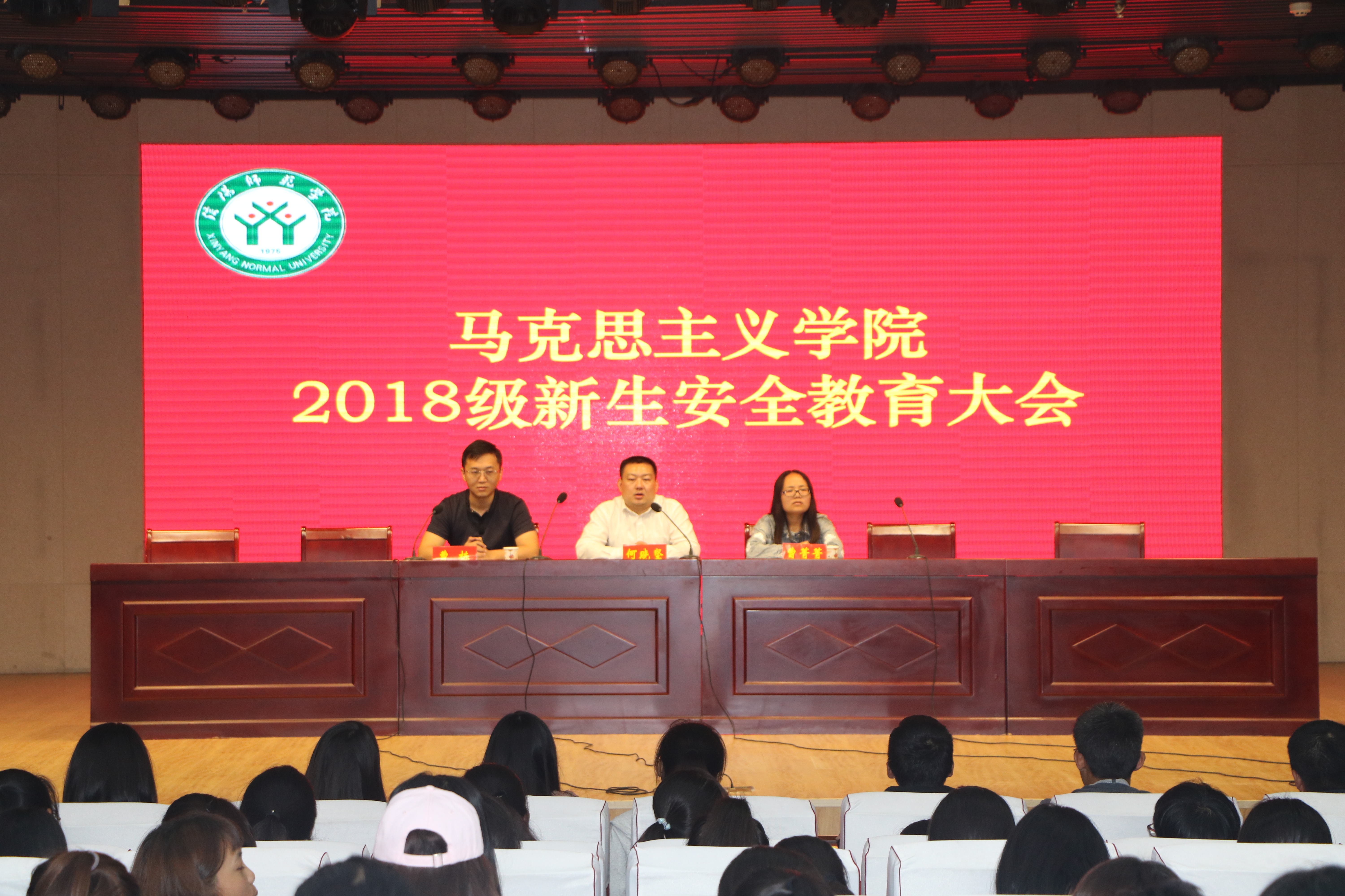 为加强pp电子官网新生入学安全教育,提高新生安全防范意识,9月26日下午,pp电子官网于理科楼报告厅召开2018级新生安全教育大会。党委副书记何晓坚,团委书记曹栋,新生辅导员曹菁菁与全体新生共同参与了本次安全教育大会。