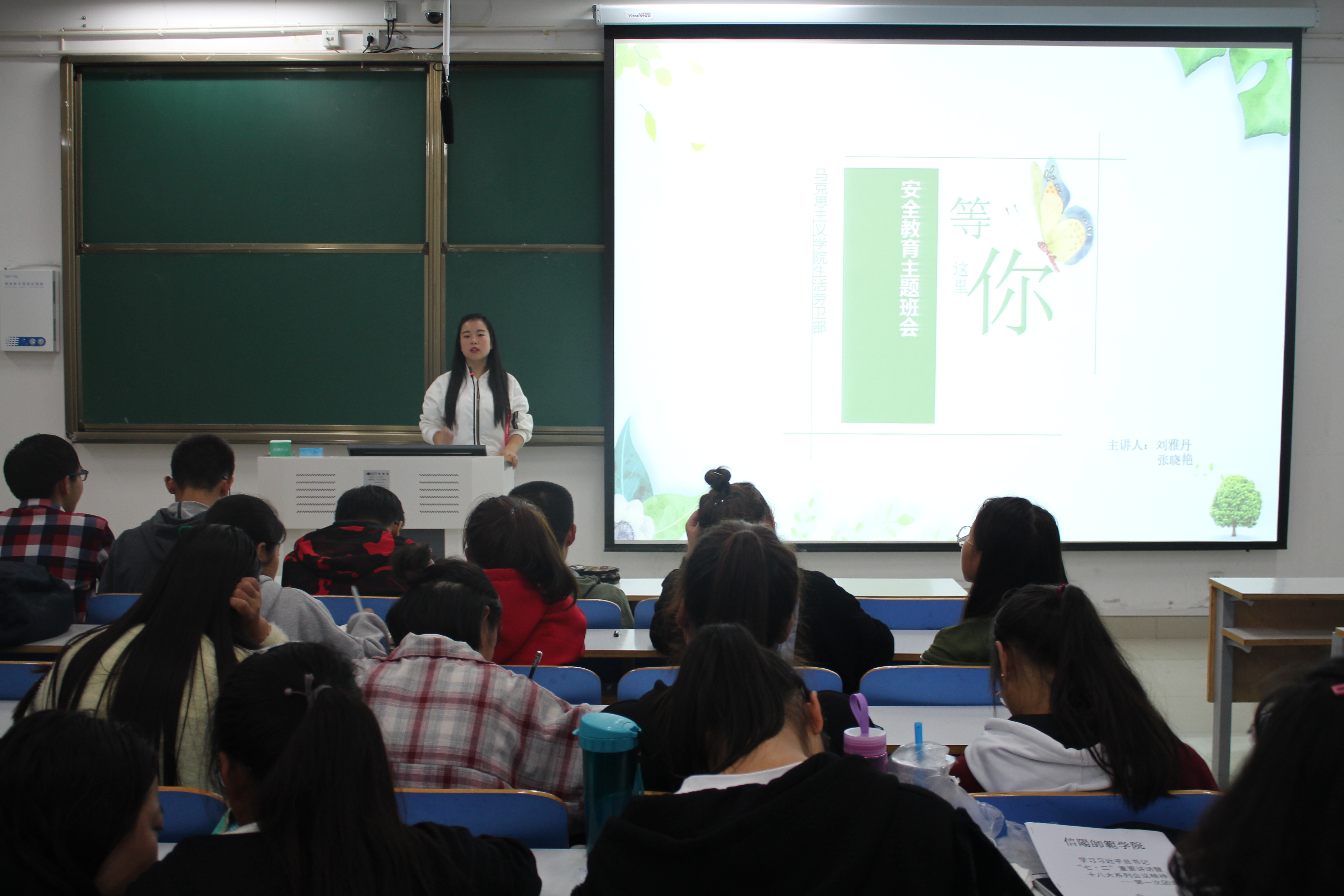 会上,刘雅丹和张晓艳使用PPT的方式,并以播放有关安全教育的短视频为切入点,分别从人身财产安全、网络安全、消防安全、心理健康安全四方面指出安全的重要性。她们提到,同学们在日常出行、运动时要时刻关注自己的人身安全,避免危险事故的发生;在公共场合妥善保管好随身携带的贵重物品,提高盗窃的安全防范意识;在使用网络时要保持高度的警惕,谨防网络、金融等方面的诈骗;在人际交往中,慎交朋友、多交益友,以乐观积极的态度面对生活。接着,她们着重强调了学生公寓内学生禁止行为及禁放物品,要求同学们严格遵守学校公寓管理规定的有关条例,不使用违规电器、私拉电线,让火灾事故远离校园。最后,张威与大家分享了有关安全方面的经验。她谈到,现在处于广播体操练习阶段,同学们要看管好自己的财物,防止财产的丢失,同时网络刷单等网络安全问题在大学生中频繁发生,这是一种损人不利己的诈骗手段。
