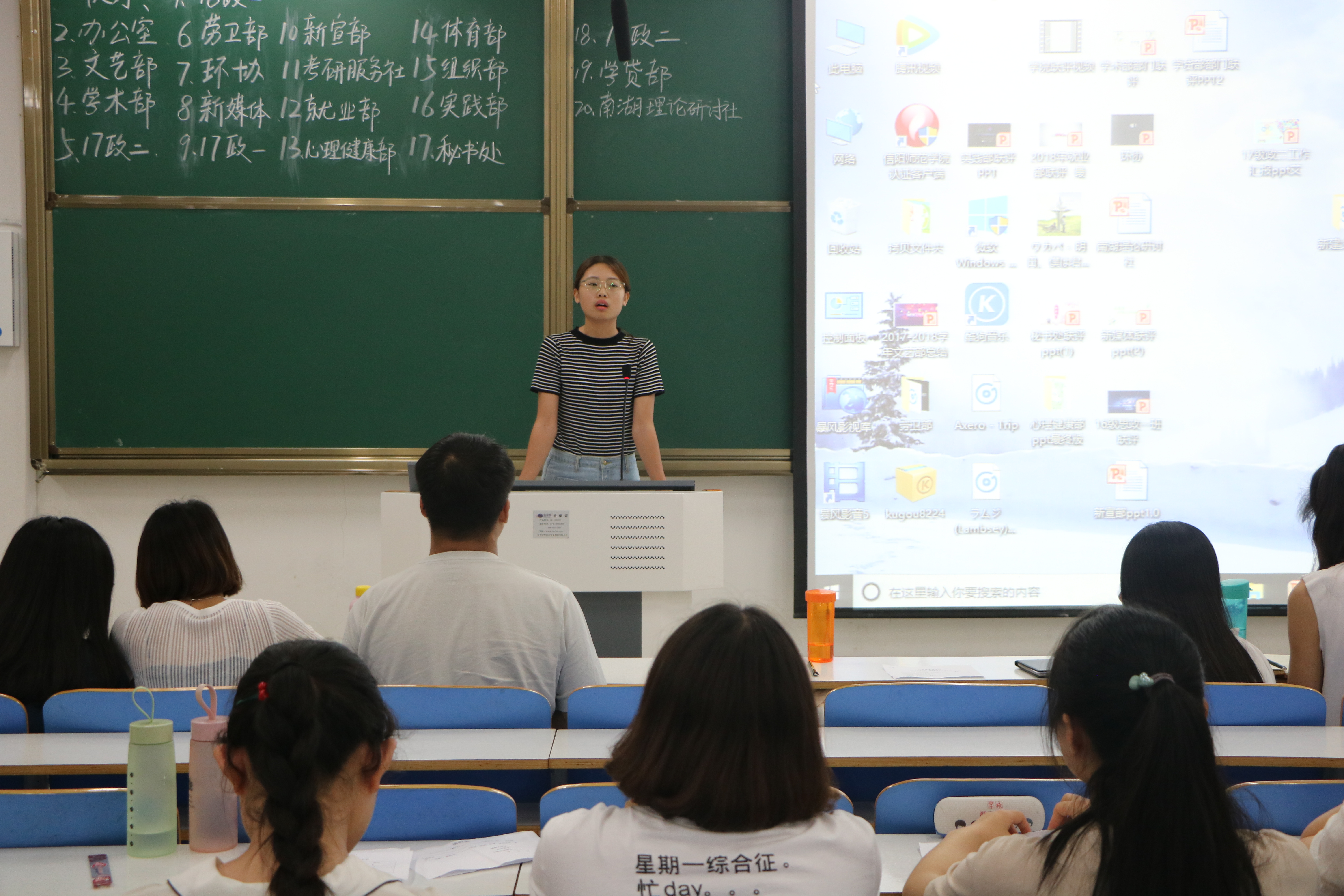 为推动学生会工作持续健康发展,并做好本学期分团委学生会工作总结,6月8日晚,pp电子官方网站2017-2018学年分团委学生会联评暨总结大会在社科楼516教室召开。学生会全体成员及各班级、社团负责人共同参加了此次会议。会议由秘书处杨可主持。