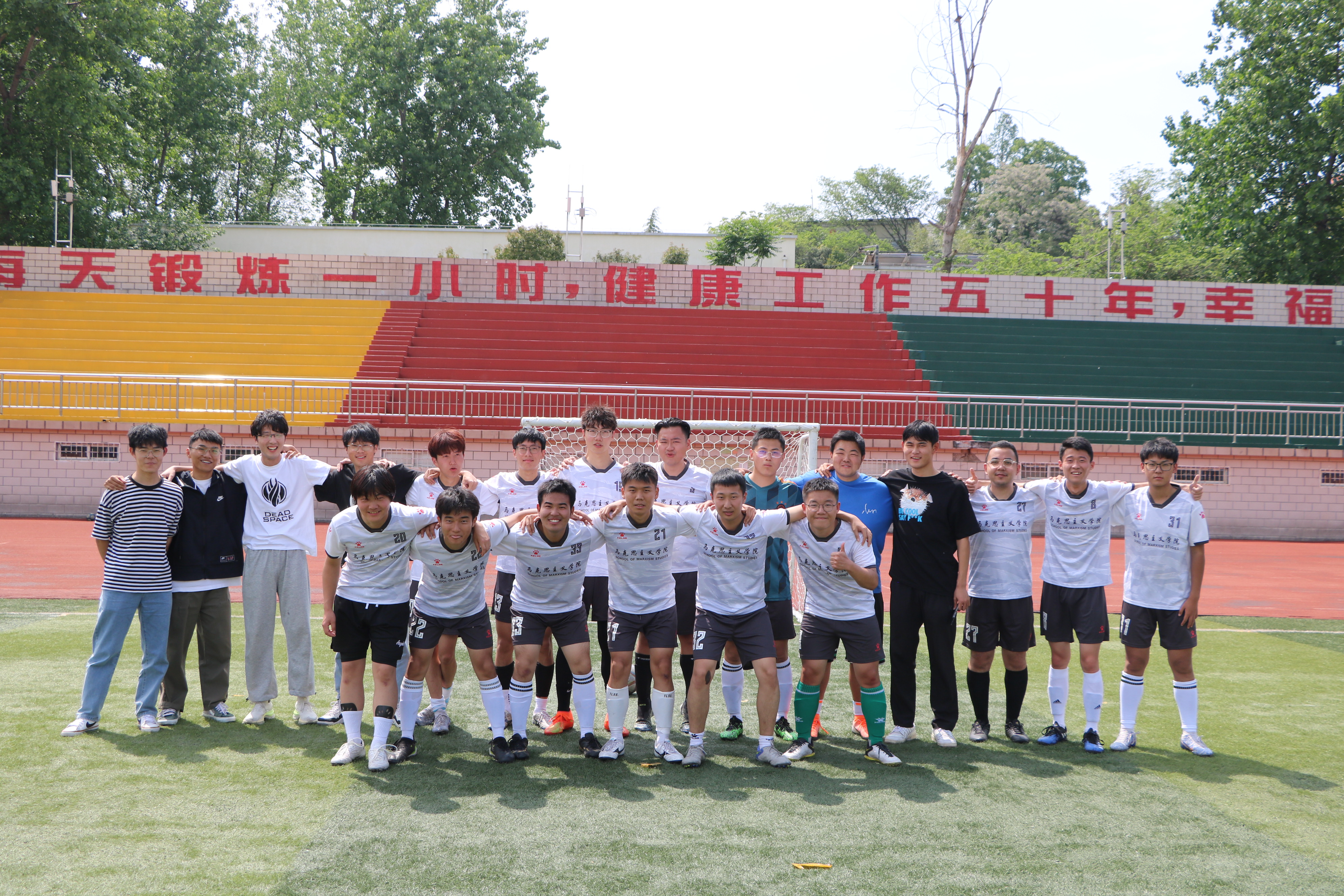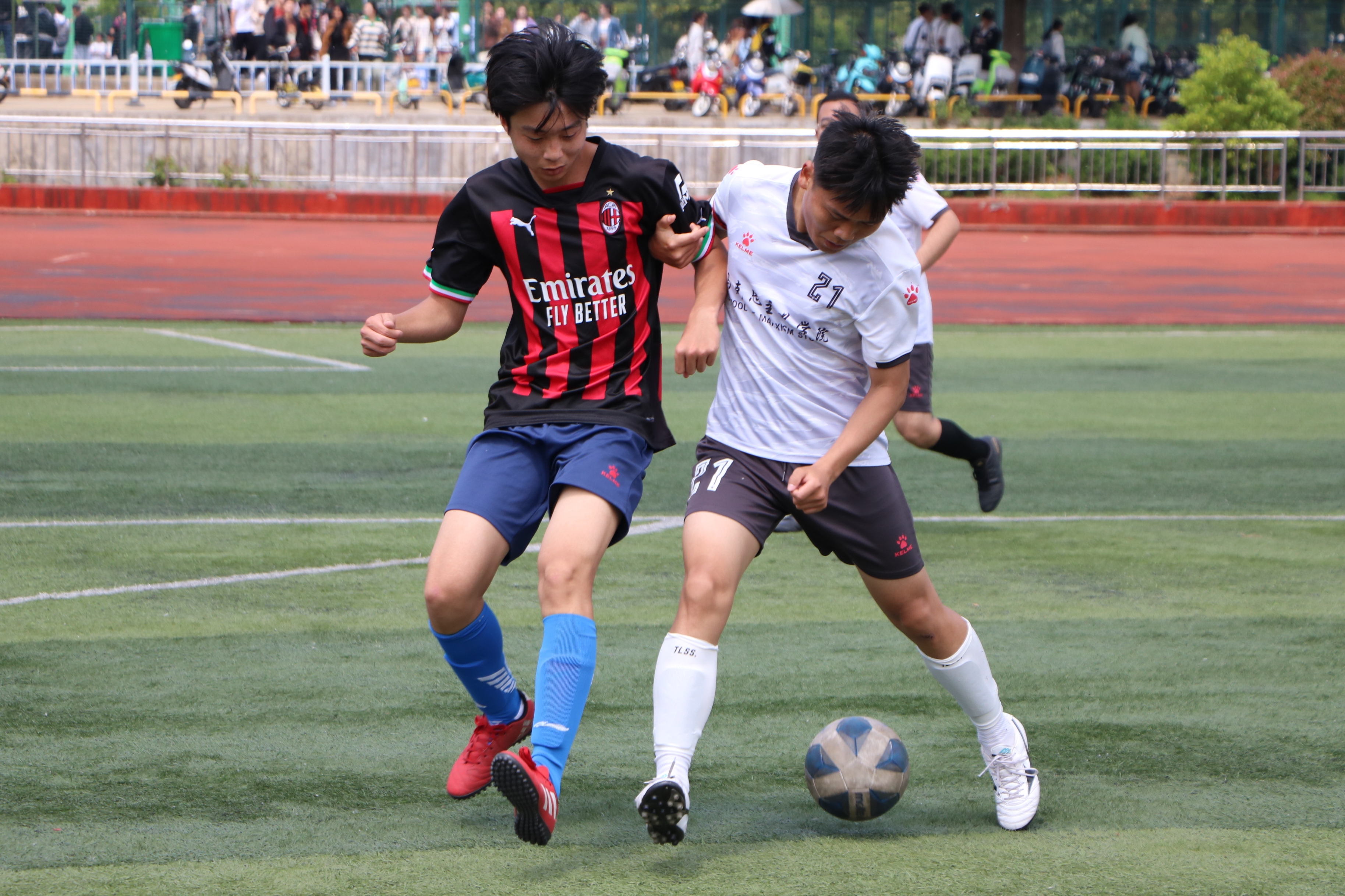 绿茵点燃梦想,拼搏舞动青春。4月27日下午,“绿茵杯”男子足球赛B组小组赛在西操场拉开帷幕,pp电子官方网站男子足球代表队与历史文化学院男子足球代表队展开激烈对决,两院学子共同观看了本次比赛。