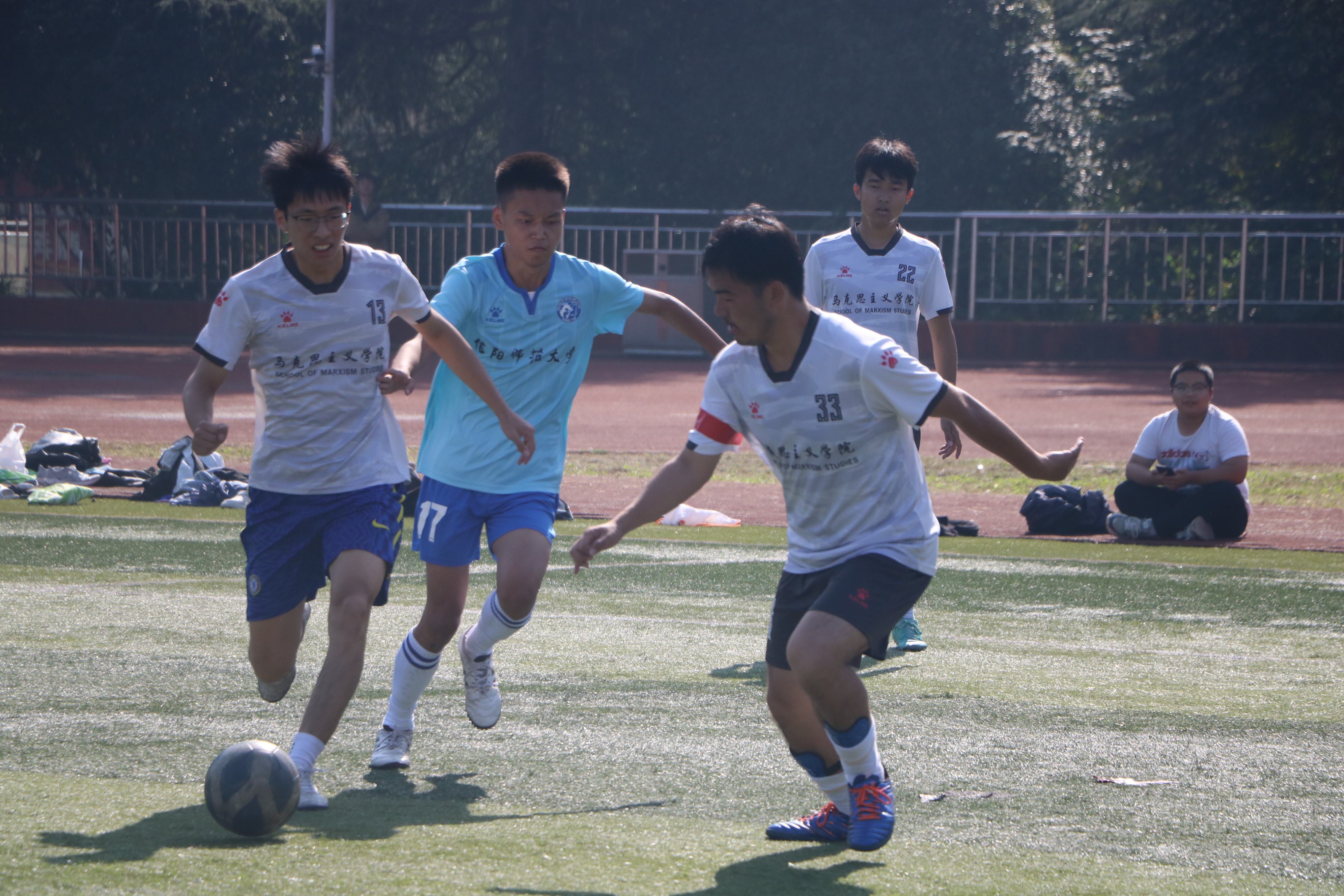 逐梦绿茵,拼搏前行。10月29日上午,“逐梦杯”男子足球小组赛在西操场拉开帷幕。pp电子官方网站男子足球代表队与历史文化学院男子足球代表队展开激烈角逐。两院学子共同观看此次比赛。