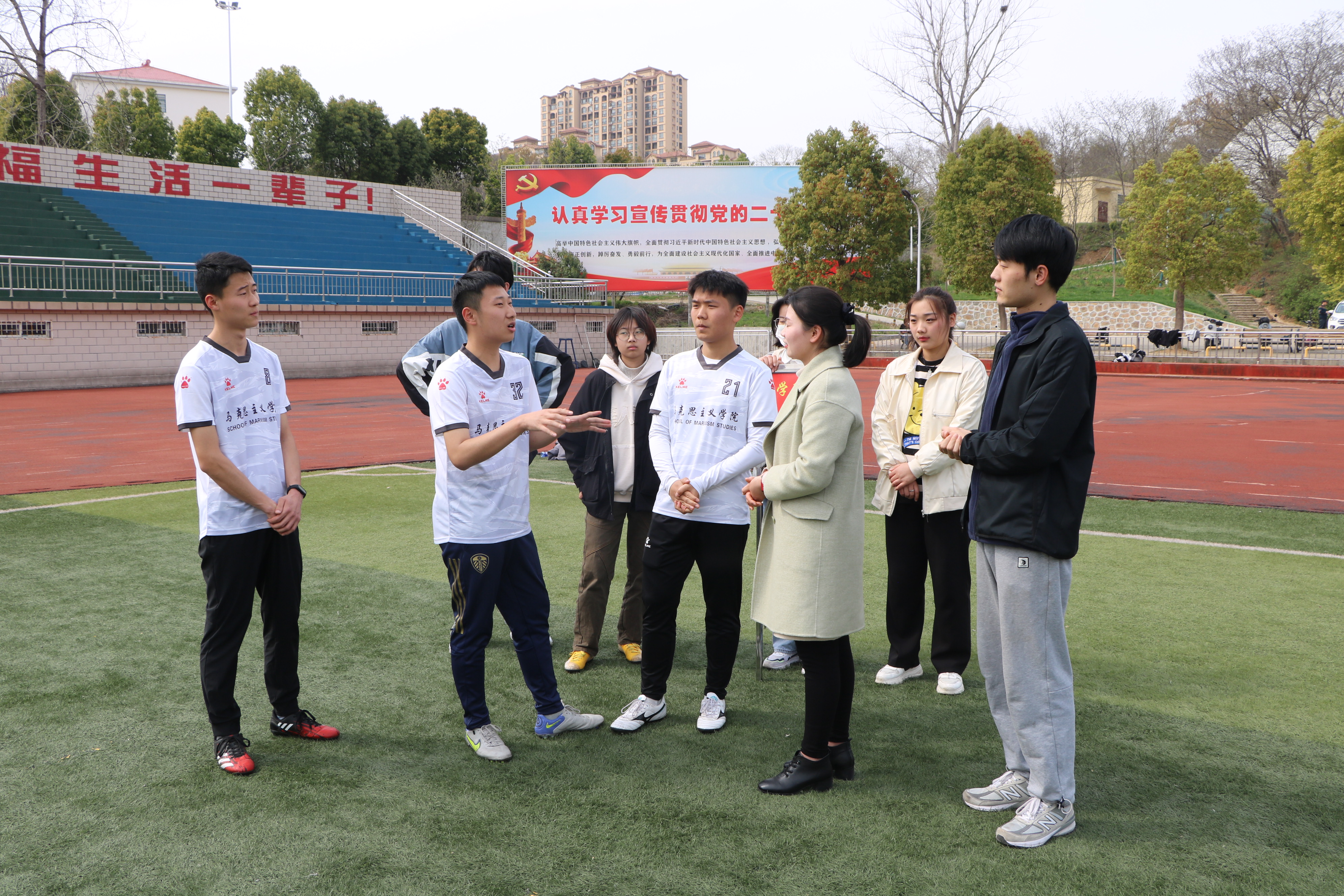 青春飞扬,乘风远航。3月28日下午,pp电子官方网站在我校西操场召开足球队动员大会。pp电子官网团委书记陶青青、专职辅导员沈海蓄、学生会主席团成员以及全体足球运动员共同参与此次大会。