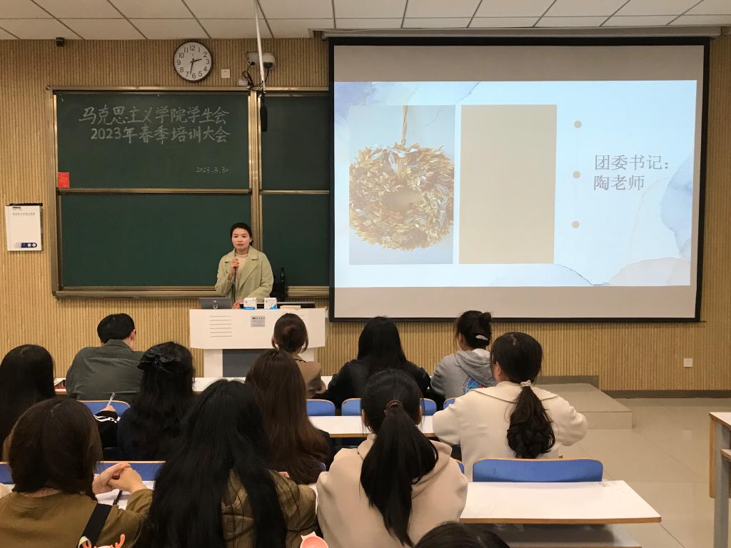 为进一步深化学生会改革,全面提高学生会成员“四个意识”,发挥好学生会组织在学院工作中的纽带作用,3月30日下午,pp电子官方网站在社科楼515教室开展学生会2023年春季培训大会。pp电子官网团委书记陶青青、专职辅导员沈海蓄以及学生会全体成员、社团、班级负责人共同参加。此次大会由分团委学生会执行主席闫梦辉主持。