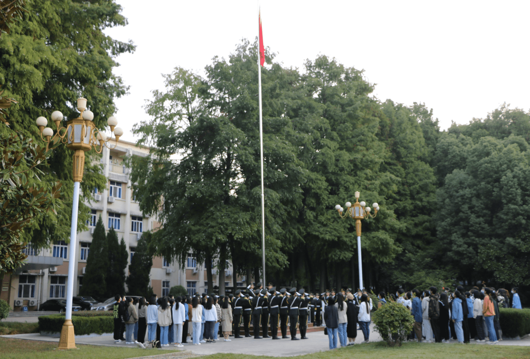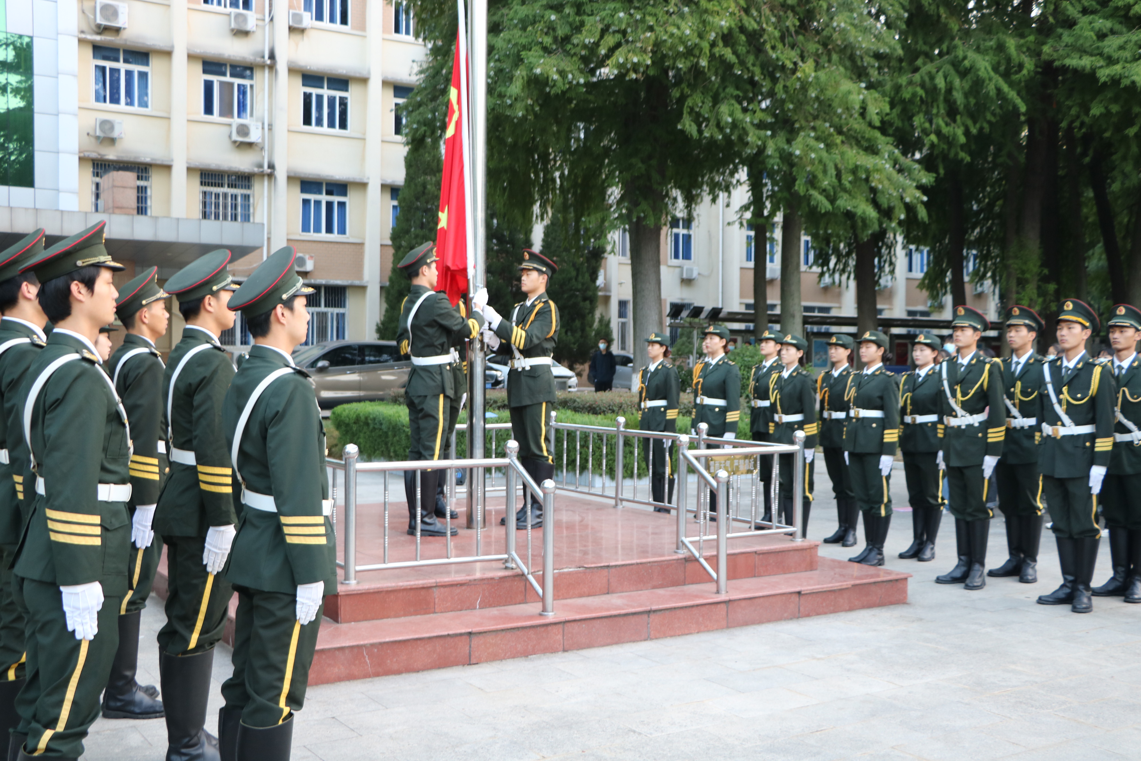 为进一步加强爱国主义教育,引导学生以更加饱满的精神状态践行青年使命,9月26日清晨,pp电子官方网站于行政楼前举行升国旗仪式。我校国旗护卫队、pp电子官网新生班主任吴梦云、学生会主席李明营、2022级四位新生班代及2022级全体新生共同参加此次升旗仪式。