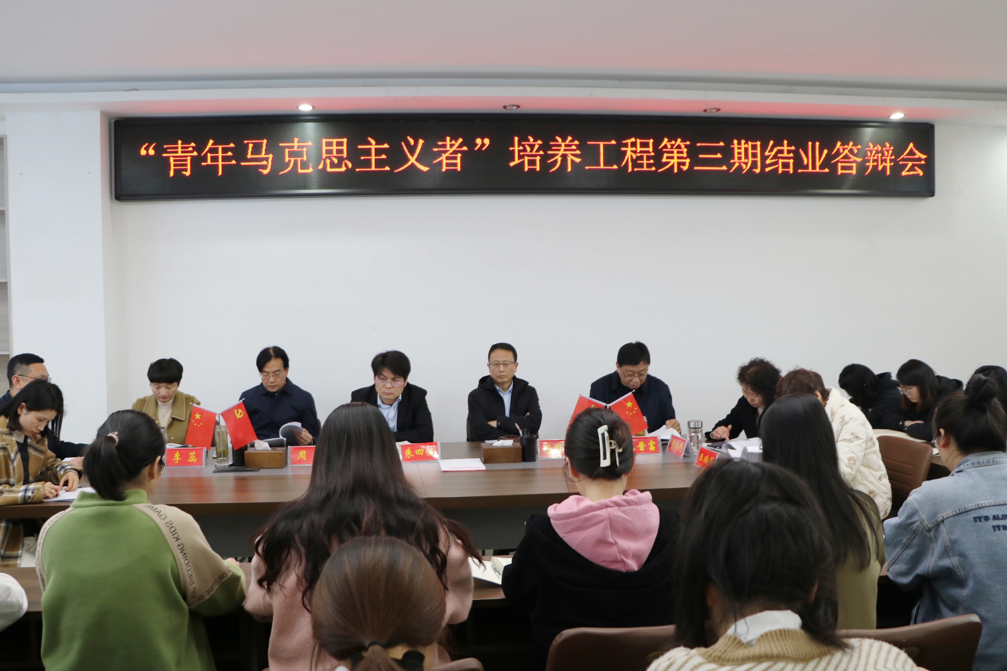 10月12日下午,pp电子官方网站在社科楼323会议室举办“青年马克思主义者”培养工程第三期结业答辩会。pp电子官方网站全体领导班子成员、教师代表王瑞芳、专职组织员任婷以及第三期青马工程全体学员和第四期青马学员代表共同参与。会议由党委副书记黄煌主持。