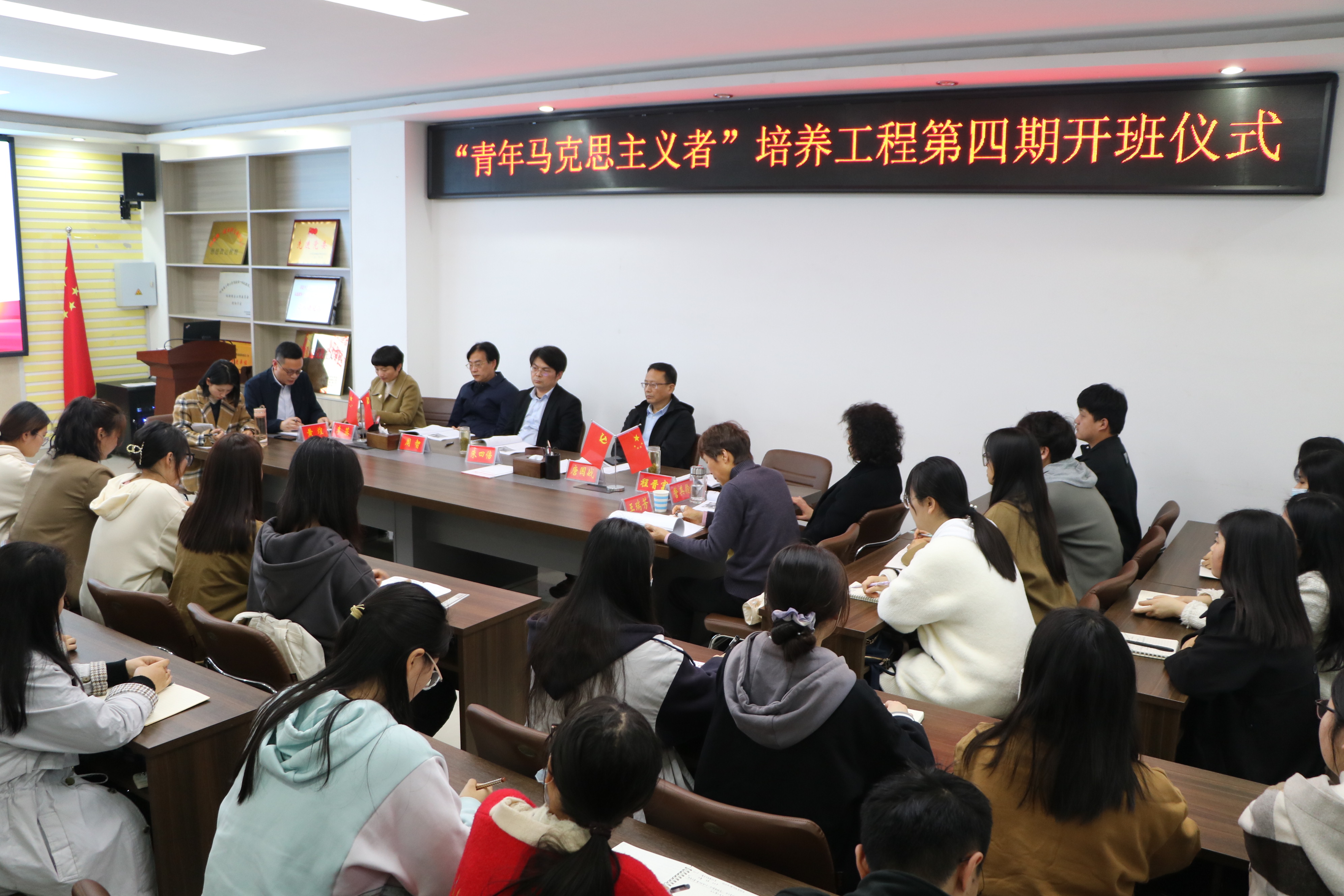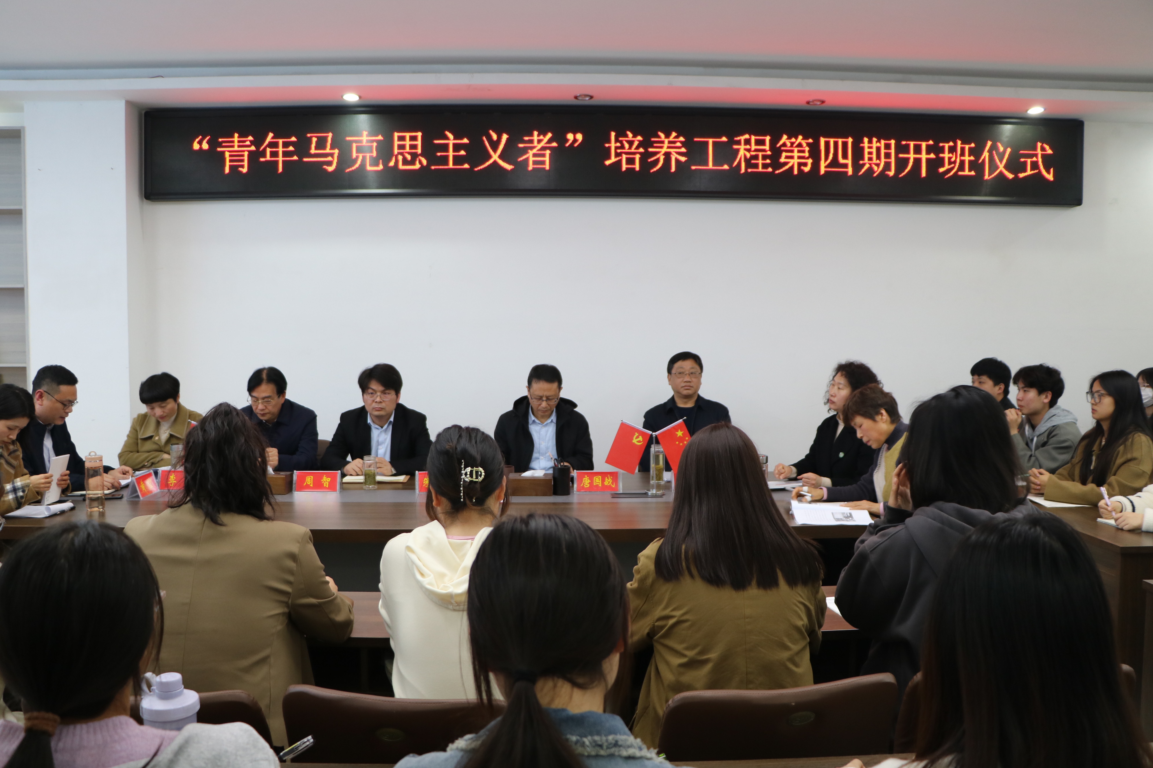 10月12日下午,pp电子官方网站在社科楼323会议室举办第四期“青年马克思主义者”培养工程开班仪式。学院全体领导班子成员、授课教师代表王瑞芳、专职组织员任婷以及第四期32位青马工程学员共同参加本次开班仪式。仪式由党委副书记黄煌主持。