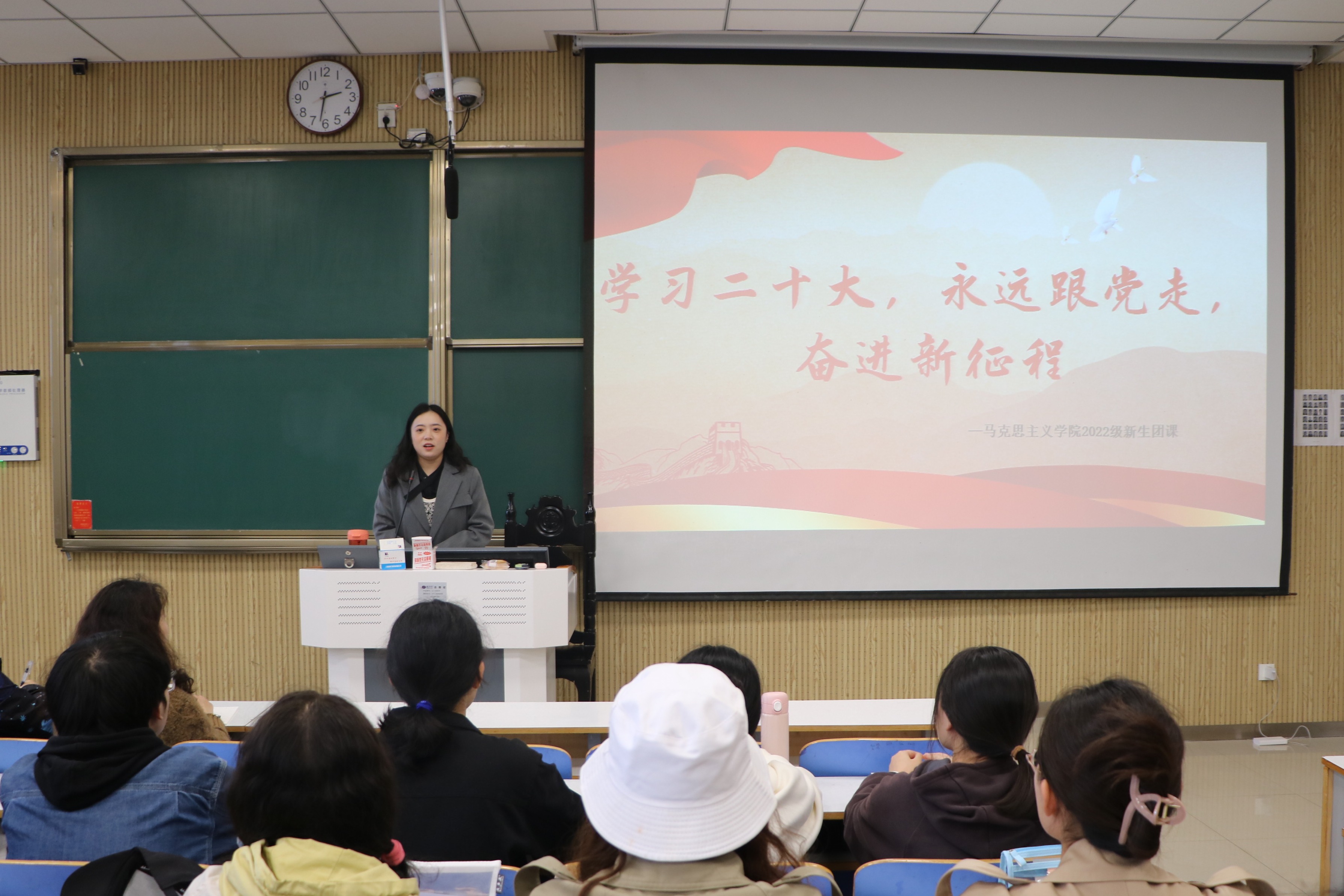 为进一步学习贯彻党的二十大精神,提高思政学子思想理论水平和政治素养,11月3日下午,pp电子官方网站在社科楼515教室开展以“学习二十大,永远跟党走,奋进新征程”为主题的第二次新生团校活动,2022级pp电子官方网站全体新生共同参加团课。本次团课由新生班主任王明园讲授。