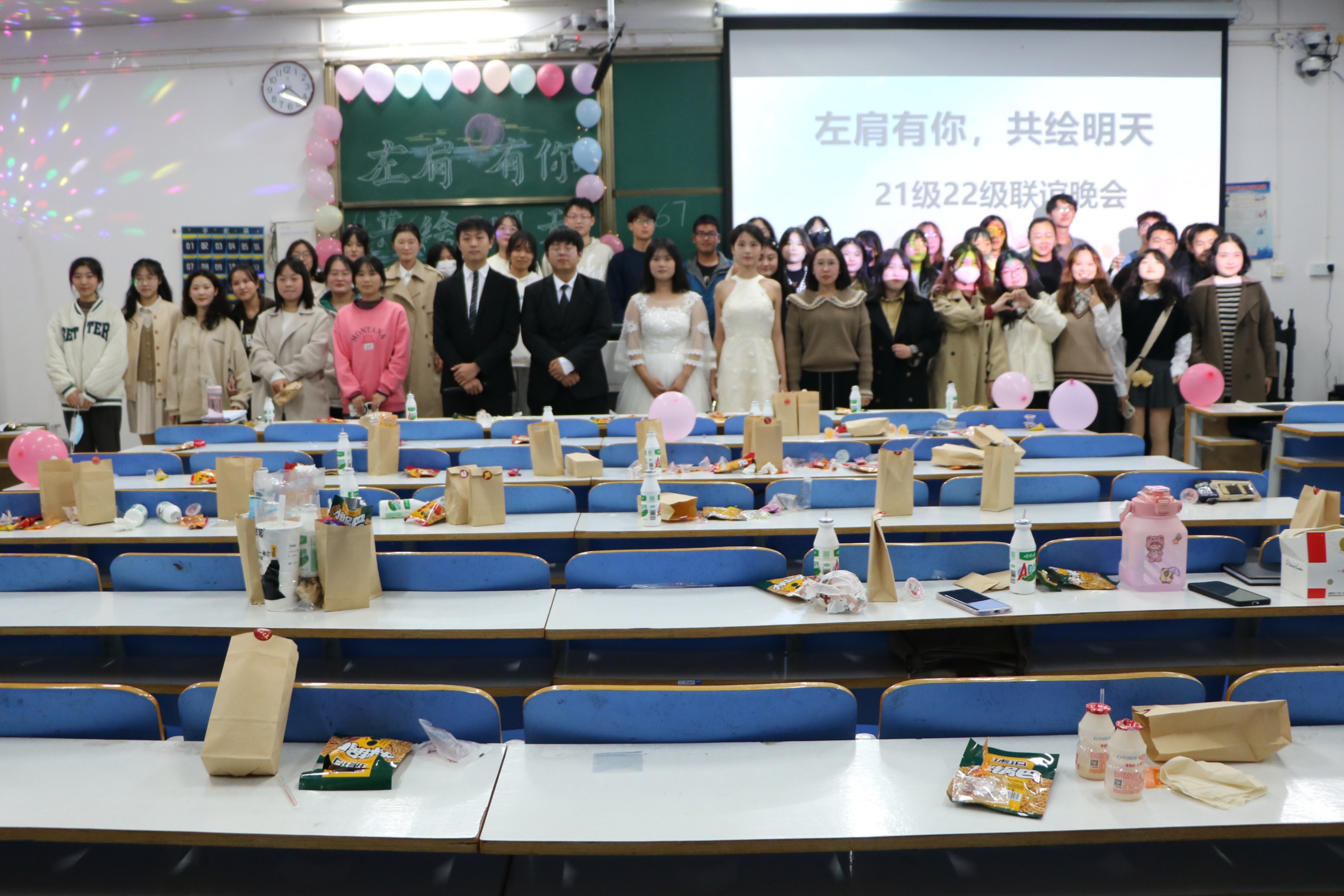 激扬青春,点缀未来。11月5日晚,pp电子官方网站在社科楼514教室顺利举办2021、2022级“左肩有你,共绘明天”联谊晚会。pp电子官网学生会主席团成员、2022级班代以及2021、2022级思想政治教育一班、二班全体同学共同参加了此次联谊晚会。晚会由陈柏宇、马思源、朱新语和孔德雨主持。