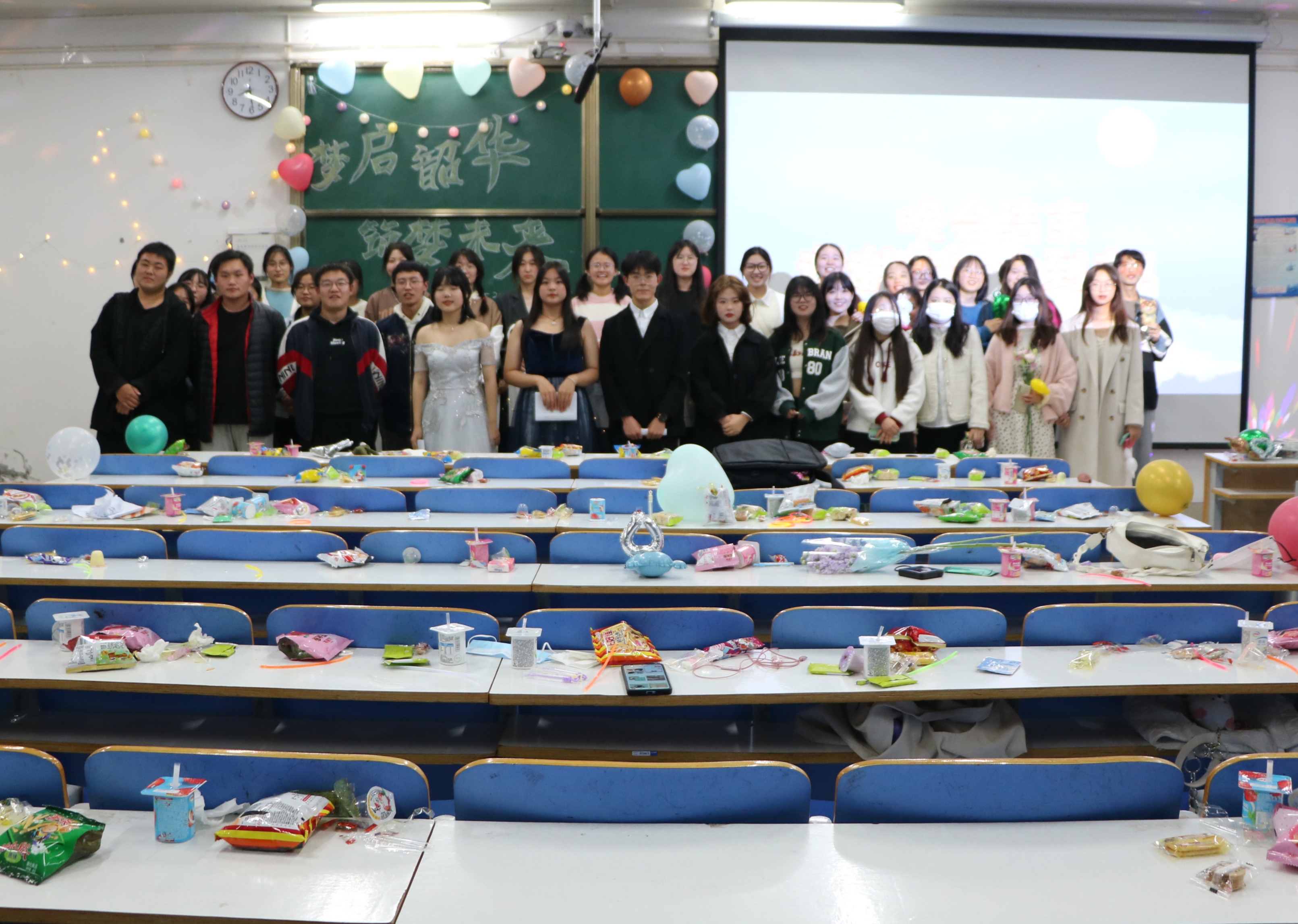 晚会在朝气蓬勃、活力四射的舞蹈串烧中拉开帷幕。同学们依次上台表演,他们用悦耳的歌声诠释青春的气息,用曼妙的舞蹈张开梦想的翅膀,用经典的相声展现语言的魅力,用幽默的小品带来欢声和笑语。其中,小品《互联网体检》不仅诙谐幽默、反映现实,且多处用到网络热梗好词,引起同学们的热烈反响;小提琴表演《告白之夜》将悠扬的琴声填满整间教室,使现场气氛到达高潮,掌声和欢呼声此起彼伏。晚会期间还穿插了许多趣味十足的游戏和形式多样的抽奖活动,推动现场氛围达到高潮,同学们积极参与互动,进一步拉近心灵的距离。最后,在场人员合影留念,晚会落下帷幕。