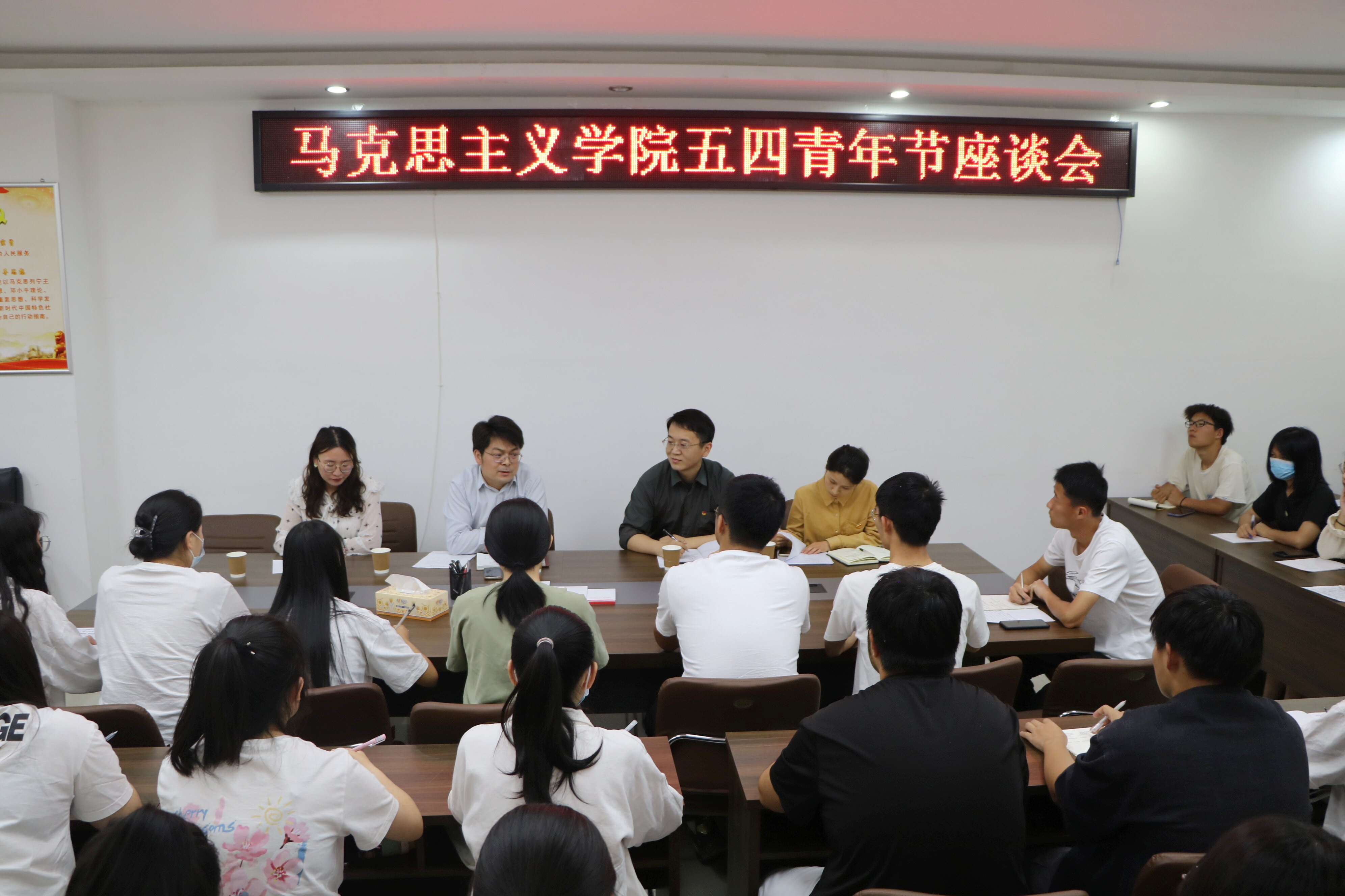 开展主题师生座谈会。以“初心如磐跟党走,百年荣光铸辉煌”为主题开展了五四青年节主题师生座谈会,号召广大团员加入到纪念中国共青团建团100周年的活动中来,发动学生党员及预备党员、团员青年、各社团负责人、群众进行五四精神学习,教育引导学院全体学生筑牢思想,深入贯彻落实习近平新时代中国特色社会主义思想。
