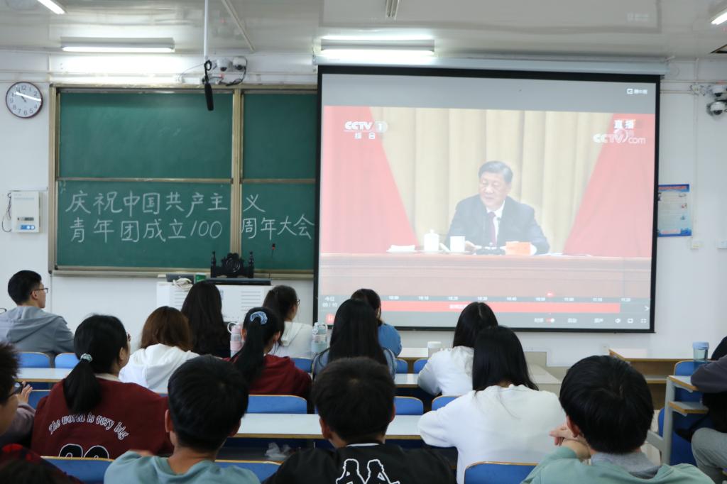 5月10日上午,庆祝中国共产主义青年团成立100周年大会在北京人民大会堂隆重举行。中共中央总书记、国家主席、中央军委主席习近平发表重要讲话。pp电子官方网站团委组织广大团员收听收看大会直播,学习习近平总书记重要讲话精神。
