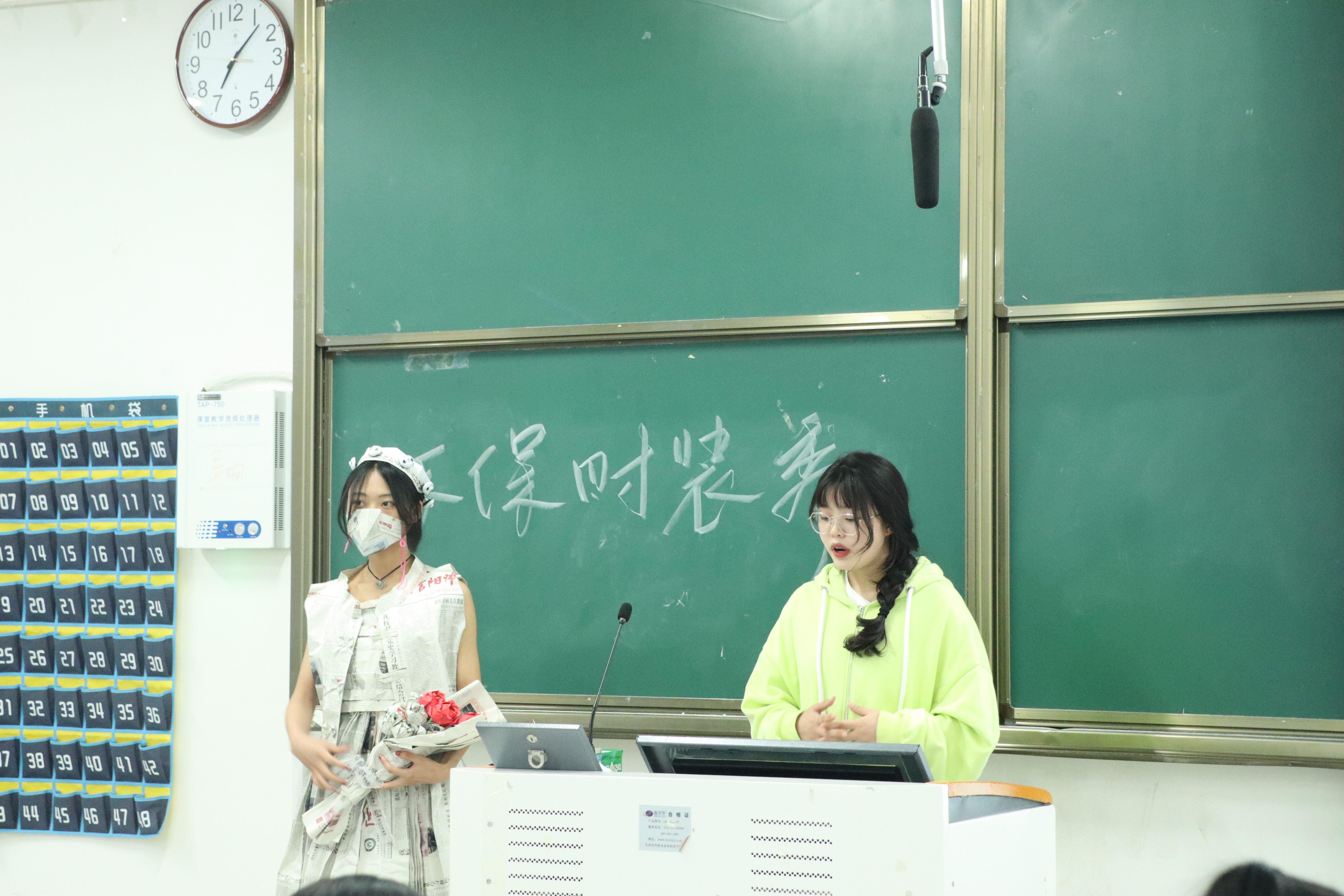 5月15日晚,pp电子官方网站环保志愿服务队和文学院志愿服务队联合举办的“魅力时装秀,青春环保风”第六届环保时装秀大赛在社科楼516教室举办,比赛由王科文、韩宁一主持。