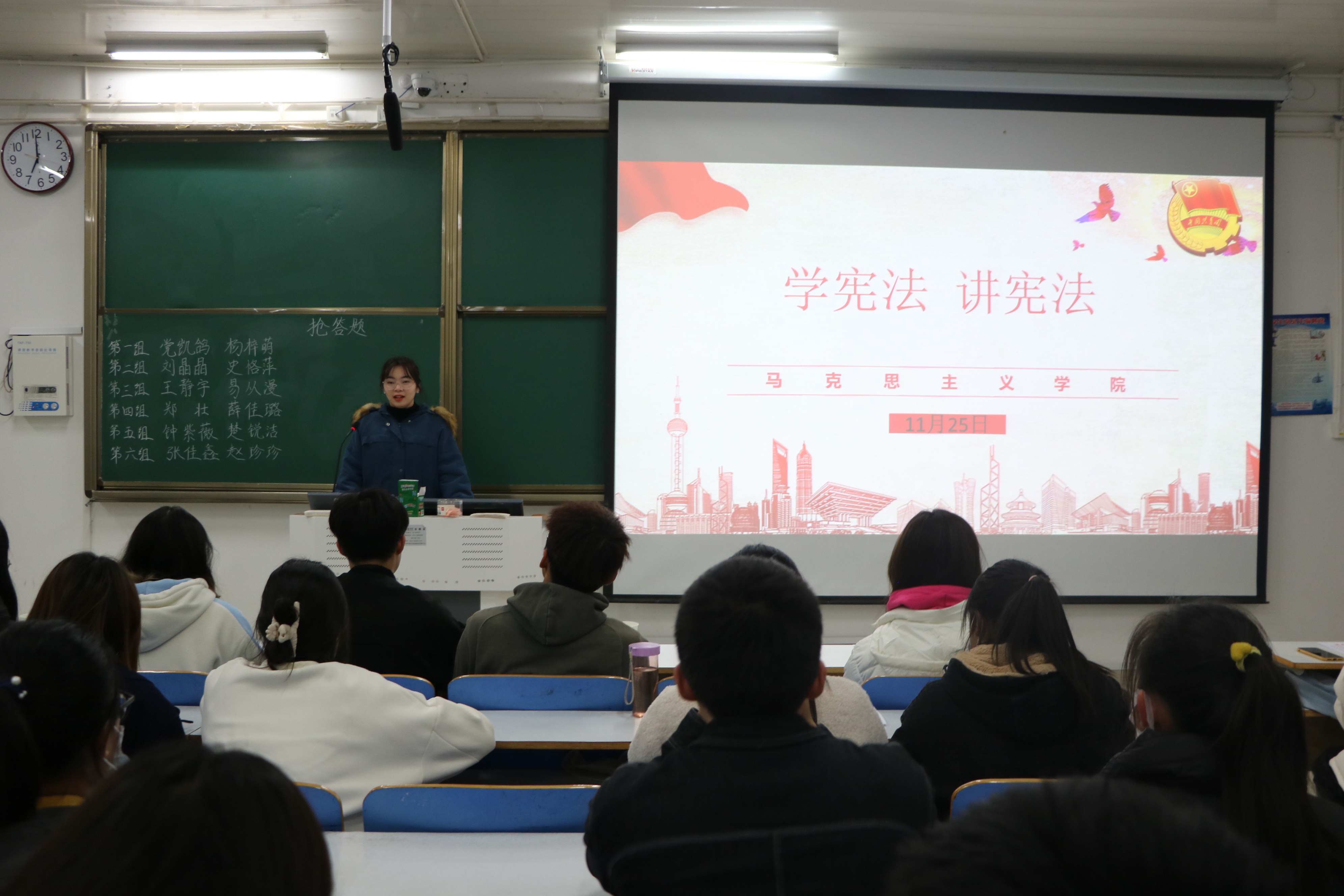 11月25日晚,pp电子官方网站在社科楼514教室举办“学宪法,讲宪法”知识竞赛决赛。pp电子官网分团委副书记危依、主席团成员袁祖顺、文艺体育部和组织部全体成员及50多名参赛选手共同参与本次决赛。决赛由文体部负责人王晨主持。