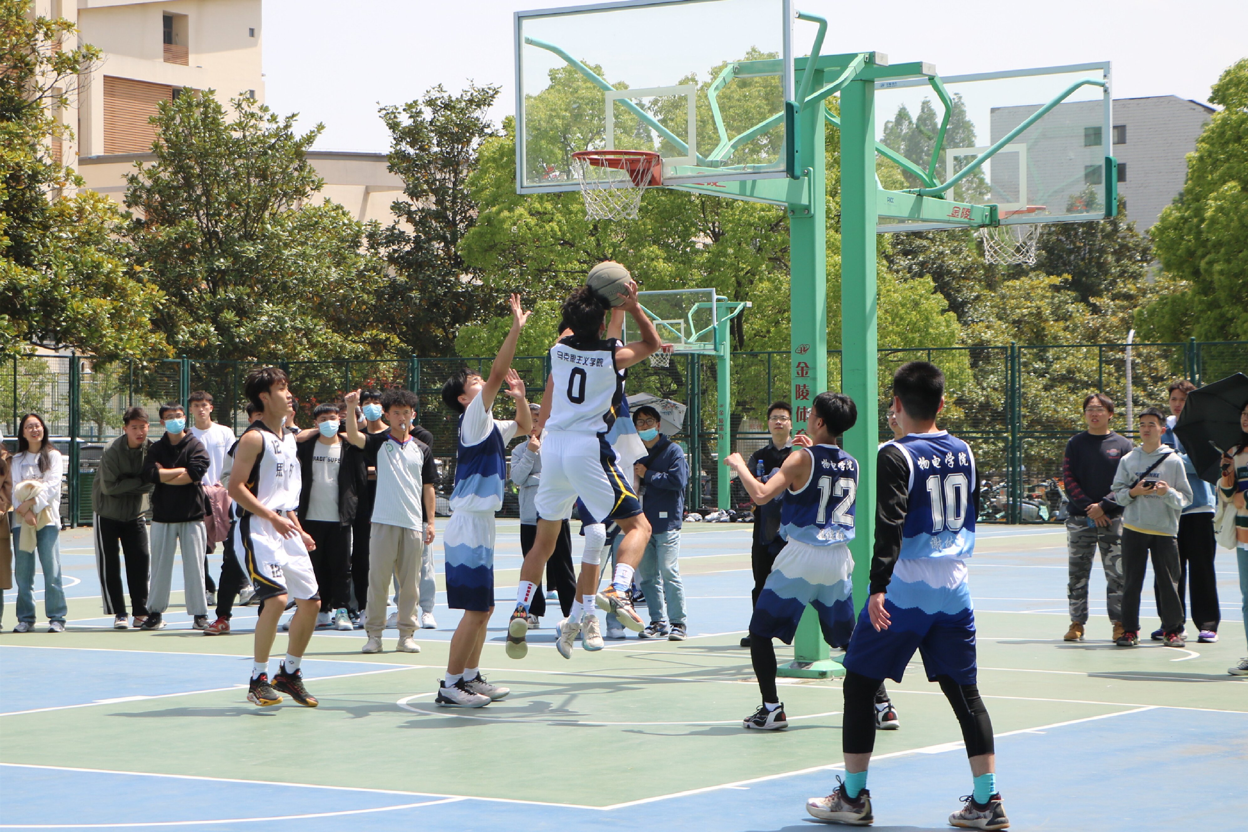 4月18日中午,第二十届“谭山杯”男篮小组赛在西篮球场拉开帷幕。pp电子官方网站篮球队同物理电子工程学院篮球队展开激烈对决。两院学生共同观看了此次激动人心的比赛。