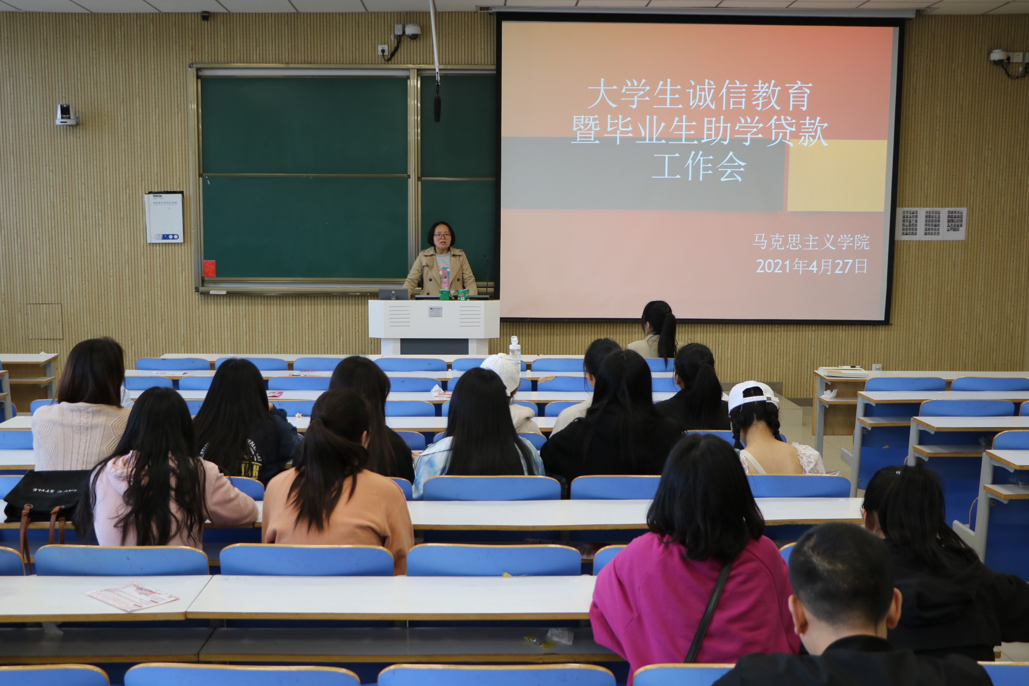 为认真做好我校2021年度贷款毕业生毕业确认工作、信息采集工作,确保我校国家助学贷款工作顺利开展,4月27日下午,pp电子官方网站在社科楼515教室顺利召开大学生诚信教育暨毕业生助学贷款工作会。pp电子官方网站团委老师曹菁菁,权益保障部负责人祝润豪、何仪以及2017级学生共同参加了本次会议。会议由曹菁菁主持。