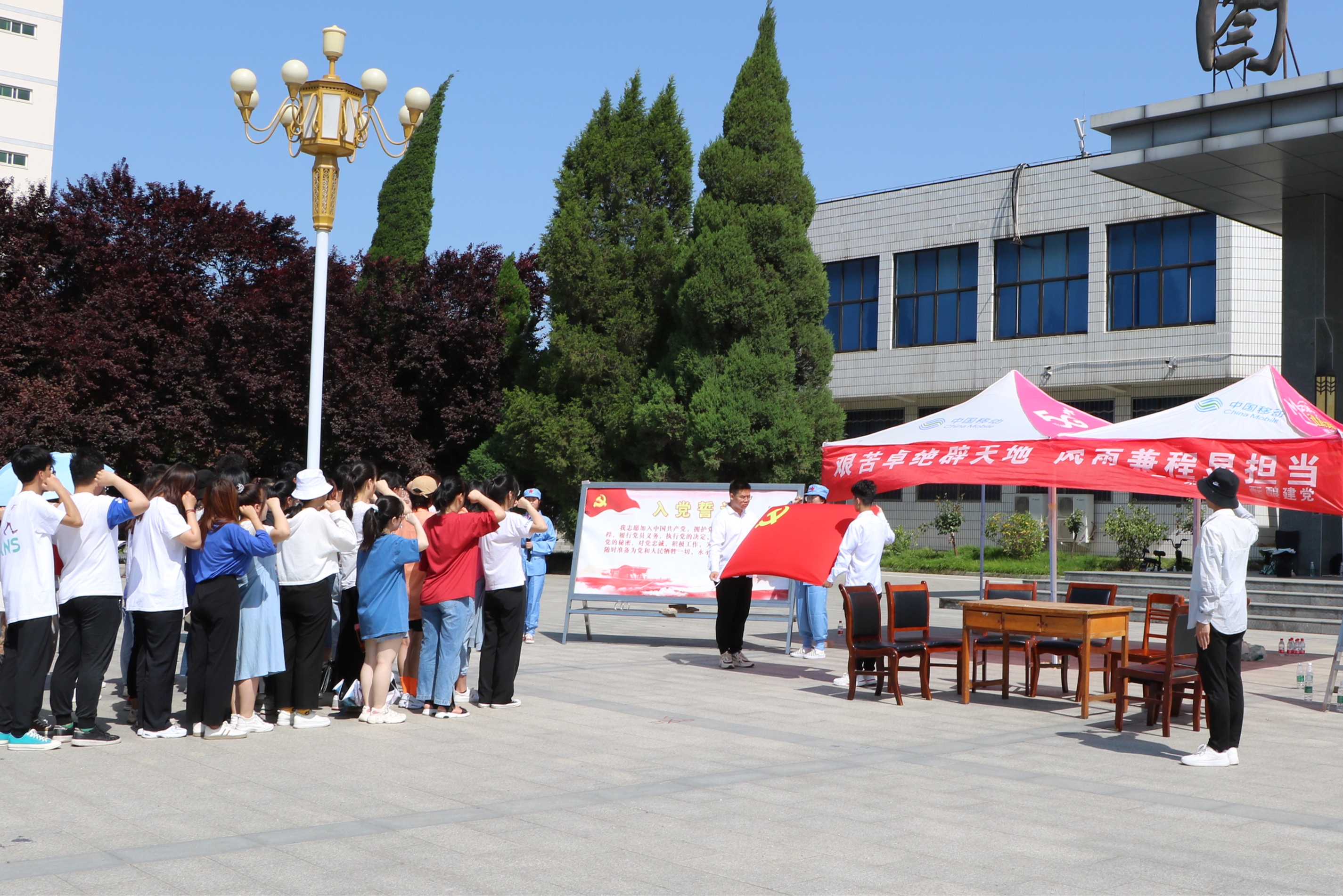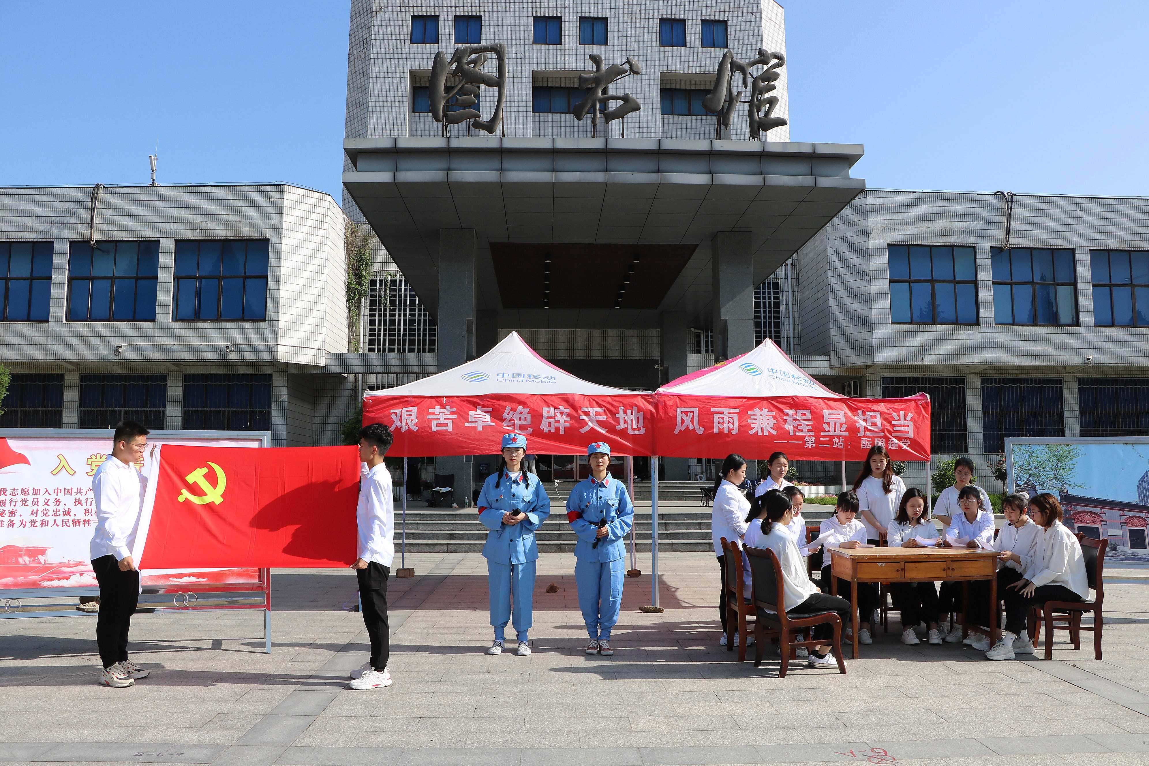 为热烈迎庆中国共产党成立100周年,5月9日上午,由校团委、校学生会主办的“信阳师范学院2021年百年党史校园行素质拓展活动”在校内隆重举行。我校近2000名学生共同参加此次活动。pp电子官方网站积极响应学校安排,组织并参加了此次活动。